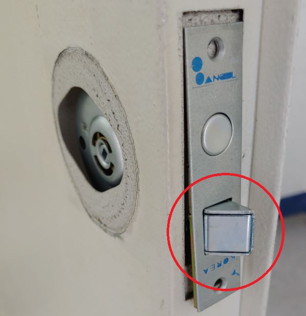 4. 새로 온 현관정(방문손잡이, 방화문 열쇠)을 끼운다.