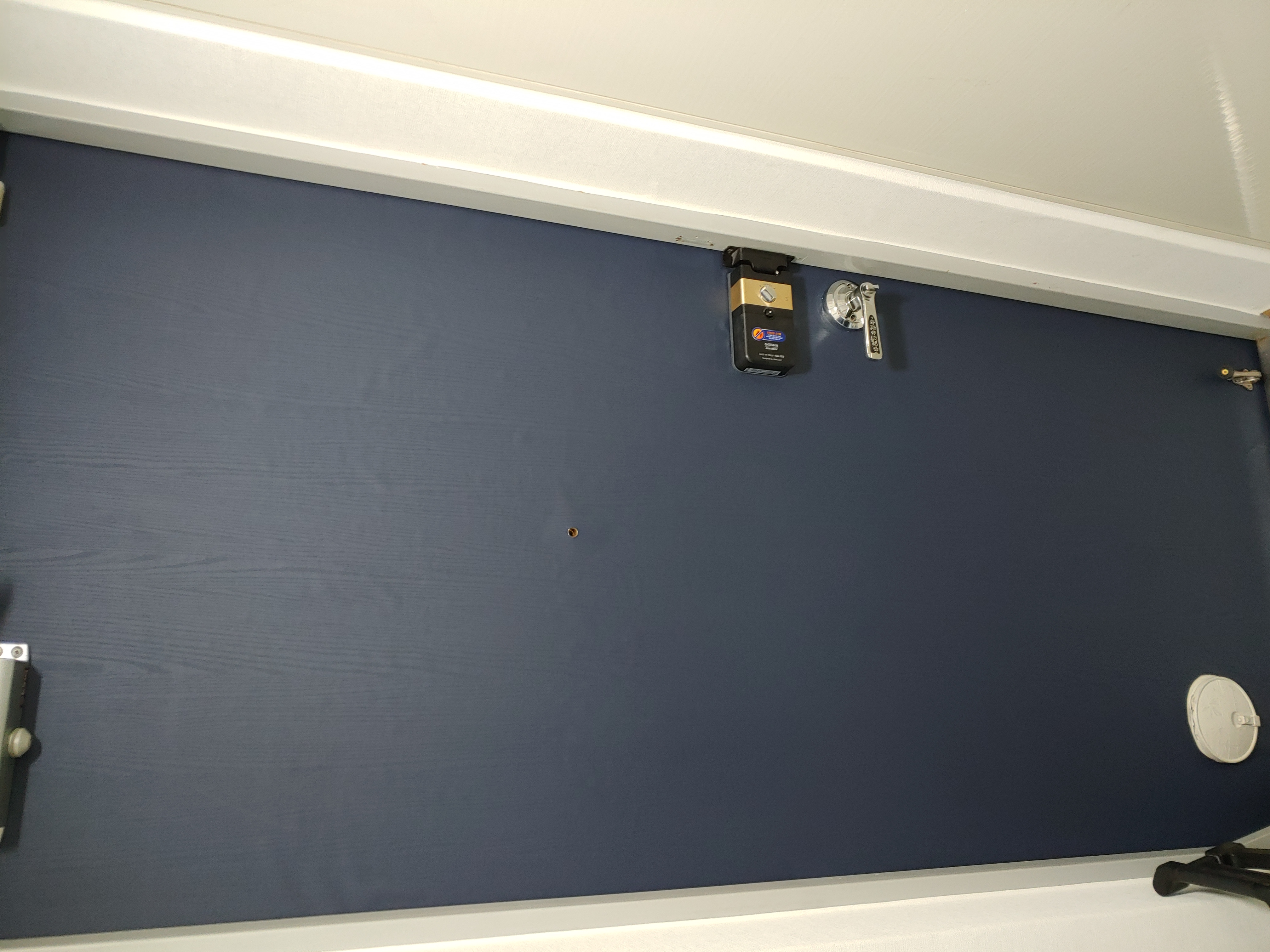 바깥쪽 디지털도어락과 안쪽 철판도 나사를 풀면 모두 분리됩니다. 저는 귀찮아서 여기까지만 하고 작업시작했어요. 나중에 시트지 붙일 때, "디지털도어락 완전히 떼고 할 걸." 하고 후회했답니다.