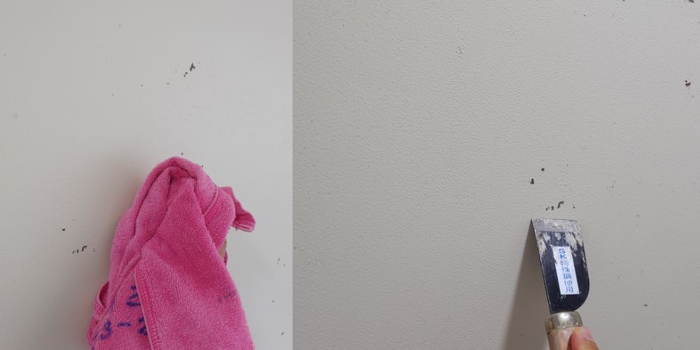3. 먼지 닦고, 울퉁불퉁한 면은 긁어줍니다.