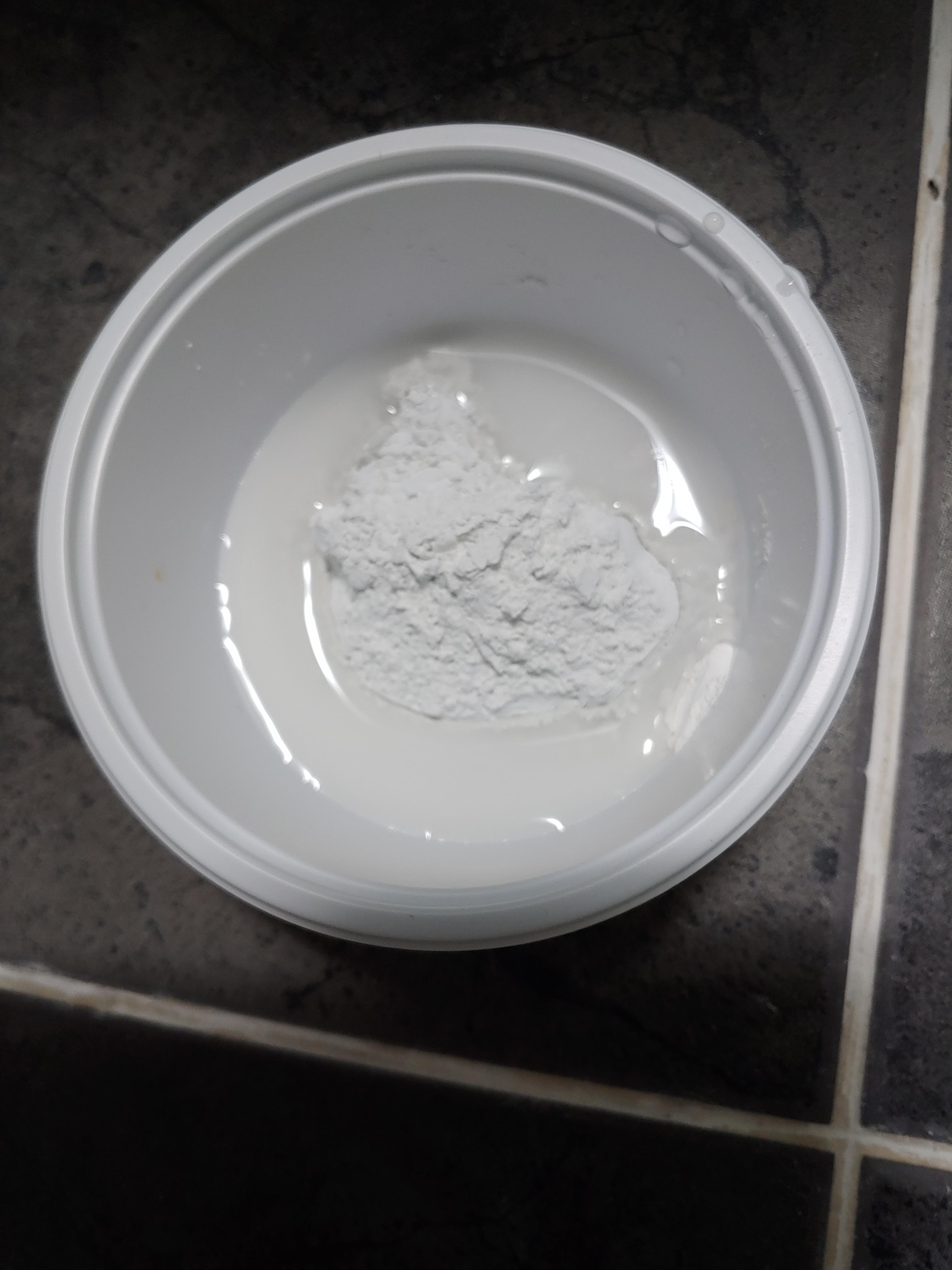 백시멘트 한 스푼, 물 조금 섞습니다. 그리고 잘 저어주세요.