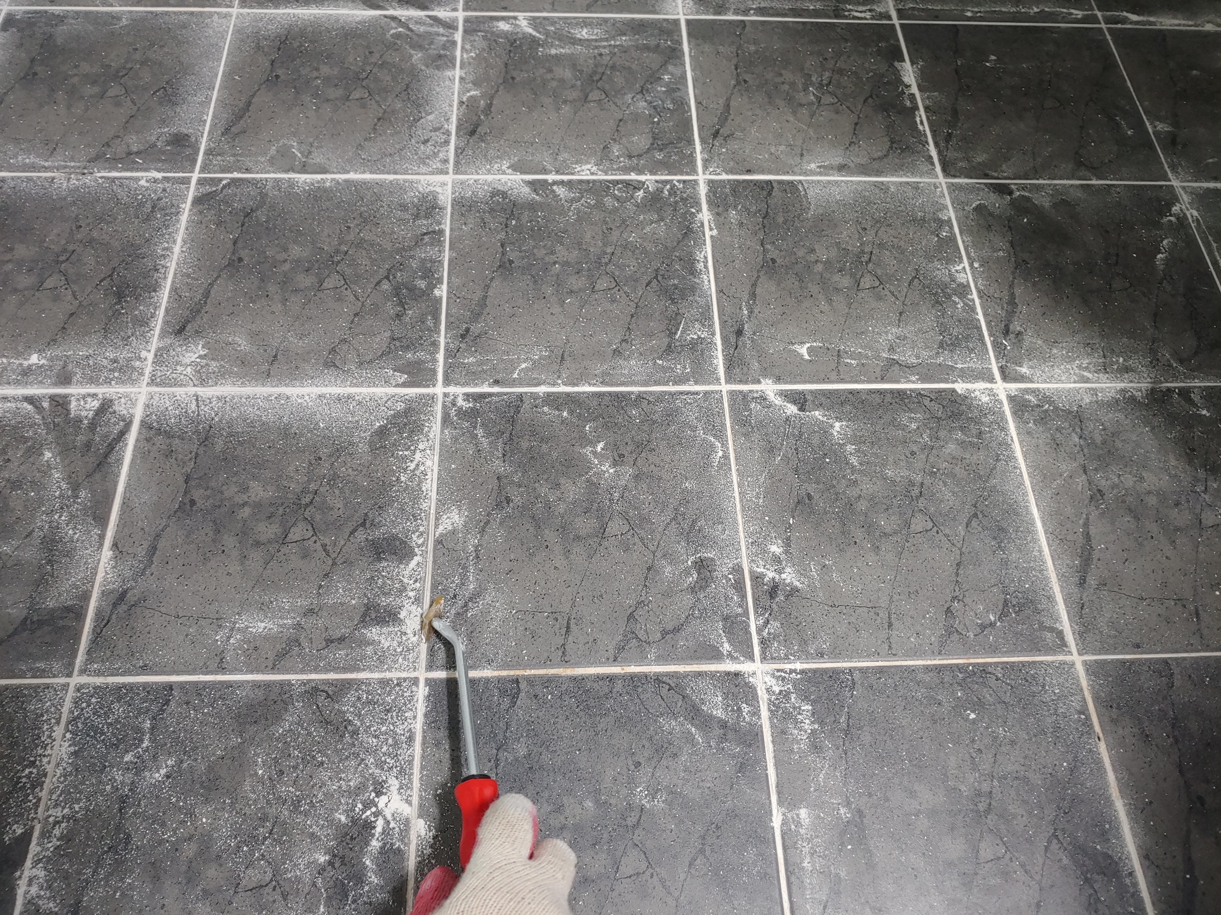 백시멘트가 타일사이에 너무 꽉 채워져 있는 경우, 줄눈시공하려고 액체를 부으면 흘러넘치기 때문에, 약간 파 주는거죠.