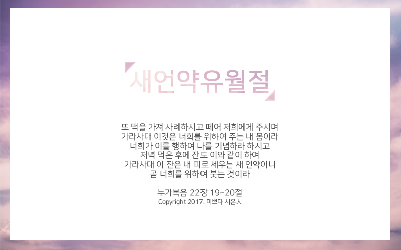 예수님 : (유월절 때) 이것이 바로 내 피로 세우는 영원한 언약이다.