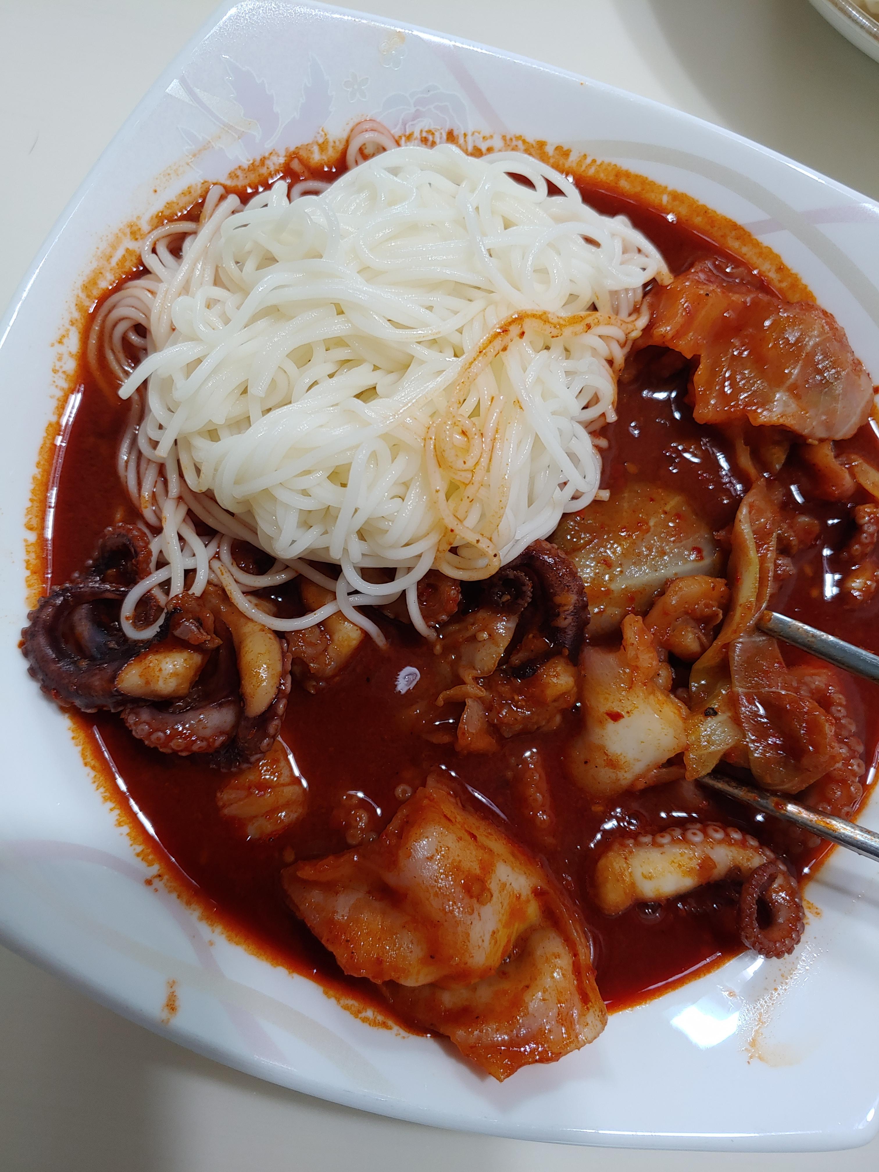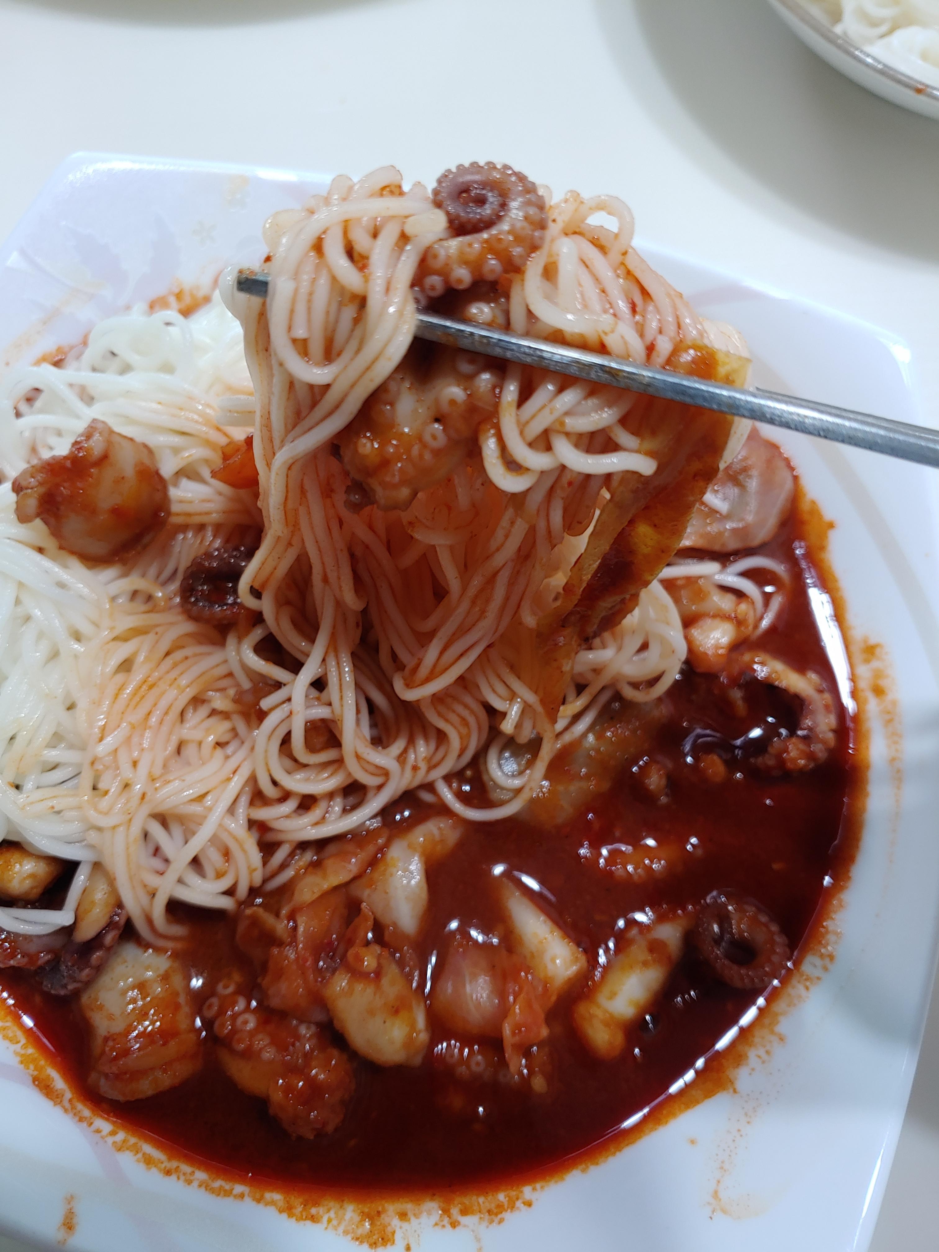 쭈꾸미볶음 국수사리와 함께 먹으니 정말 맛이 좋습니다.