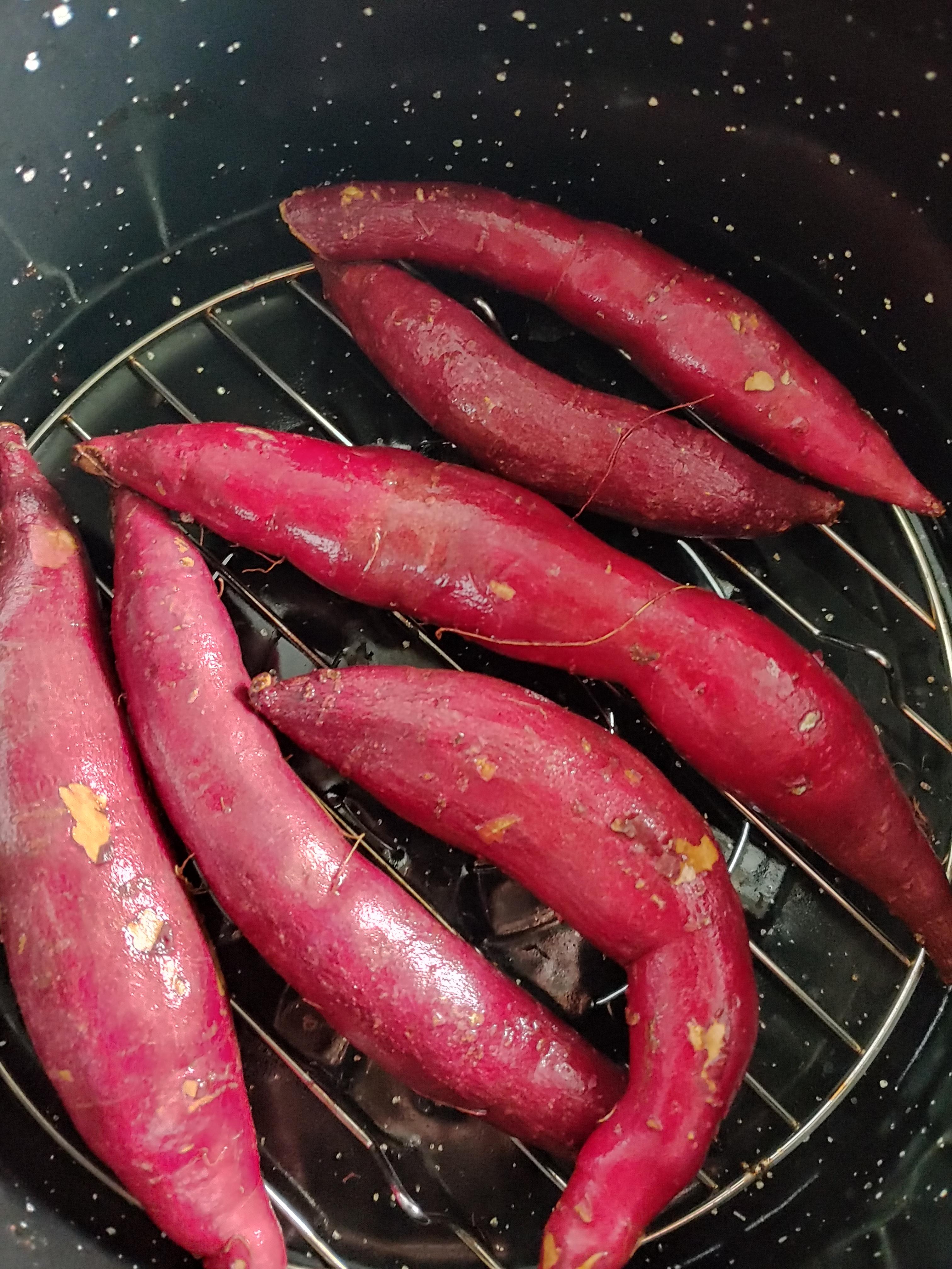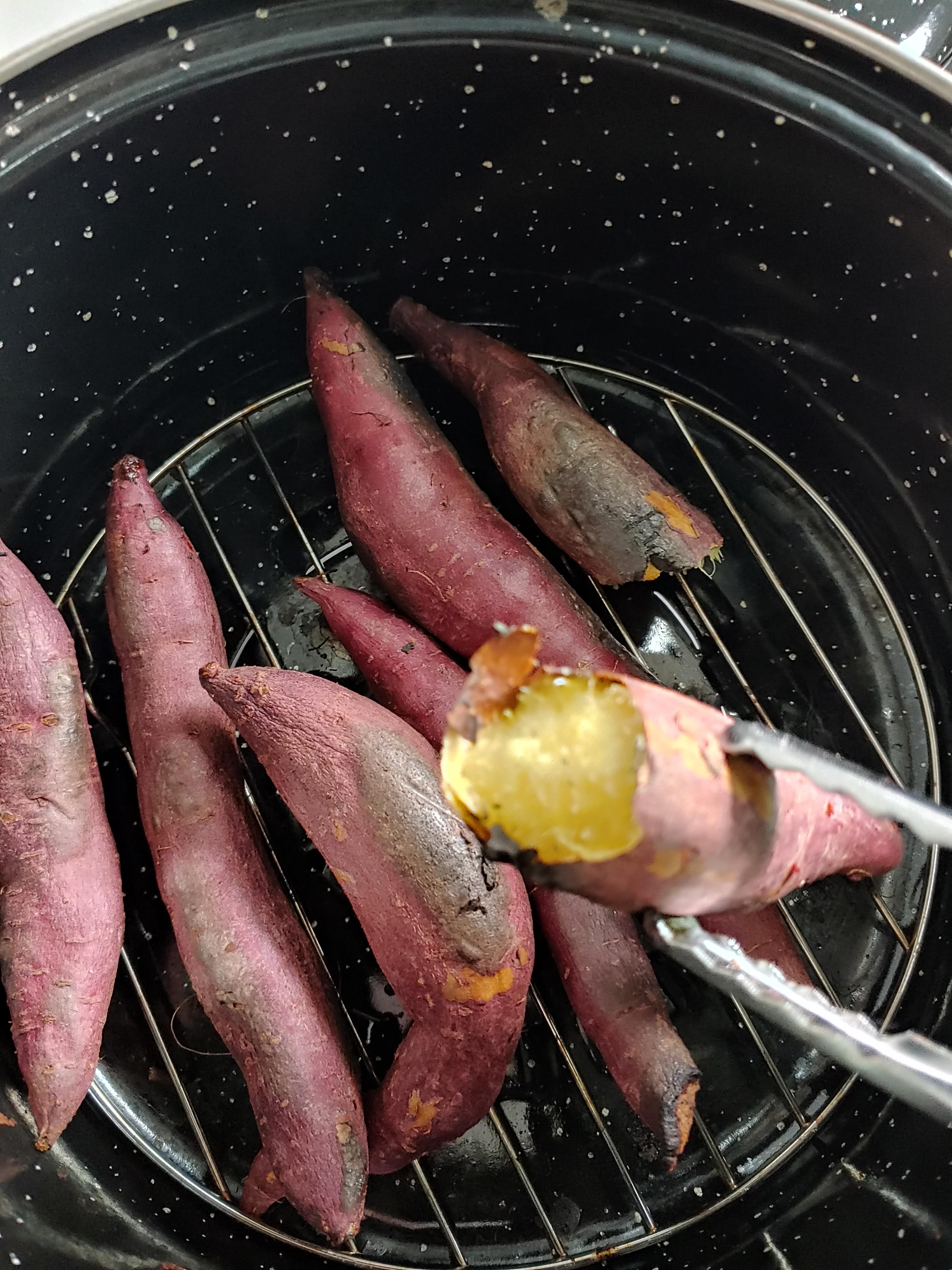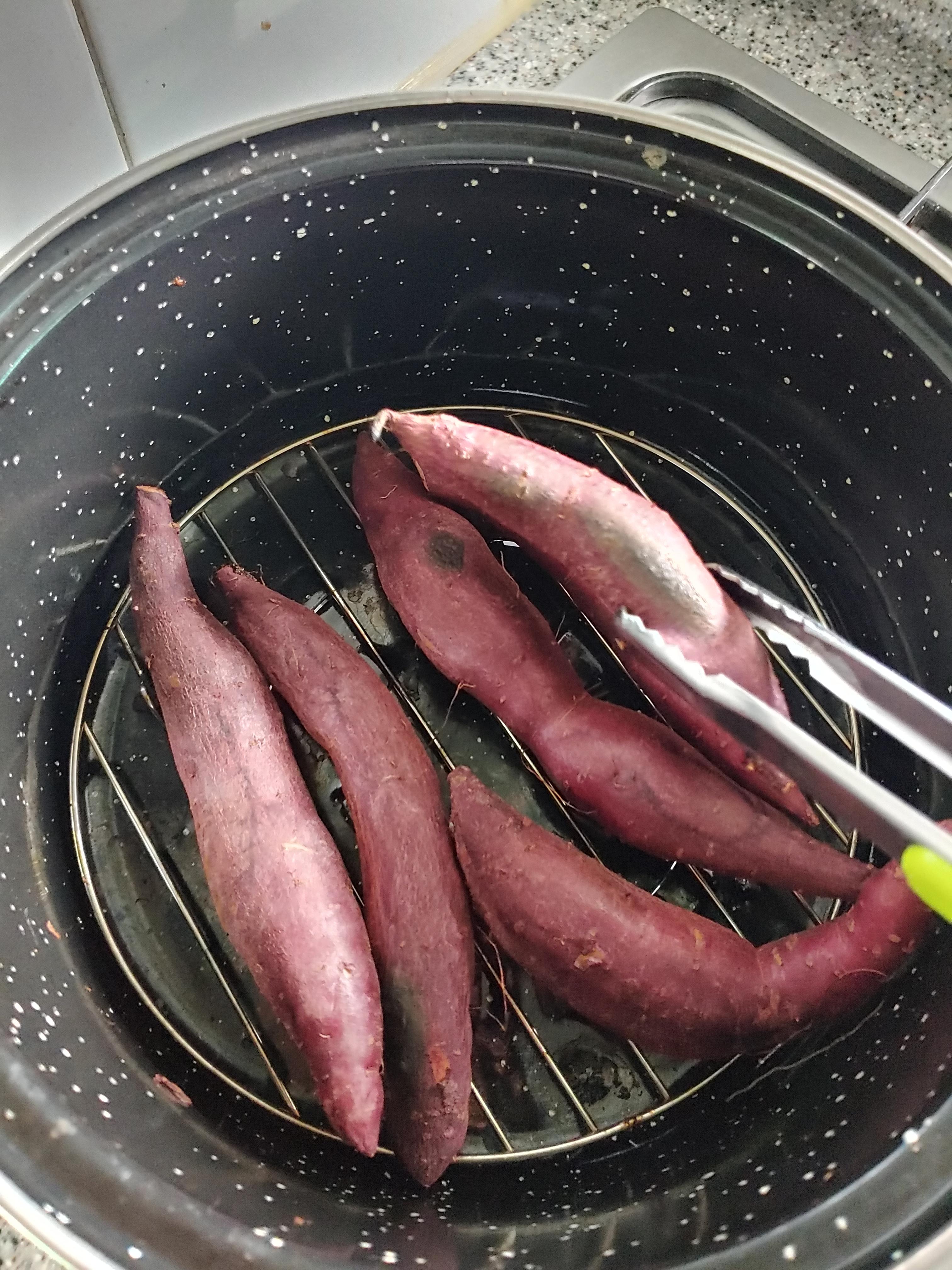 직화냄비로 군고구마를 구울 때는, 고구마가 두꺼우면 굉장히 힘들어요.
