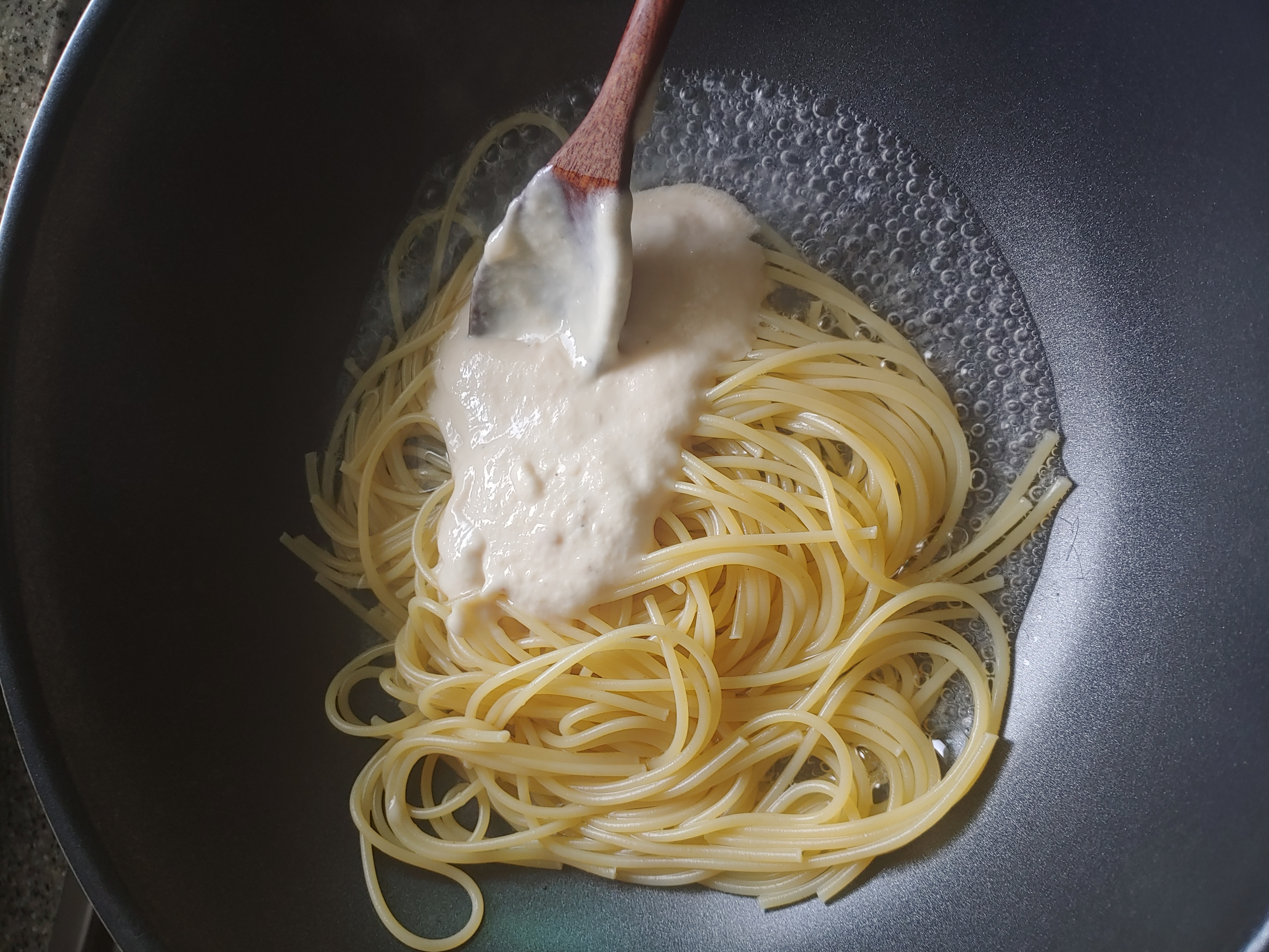 2. 스파게티 잘 넣는다.