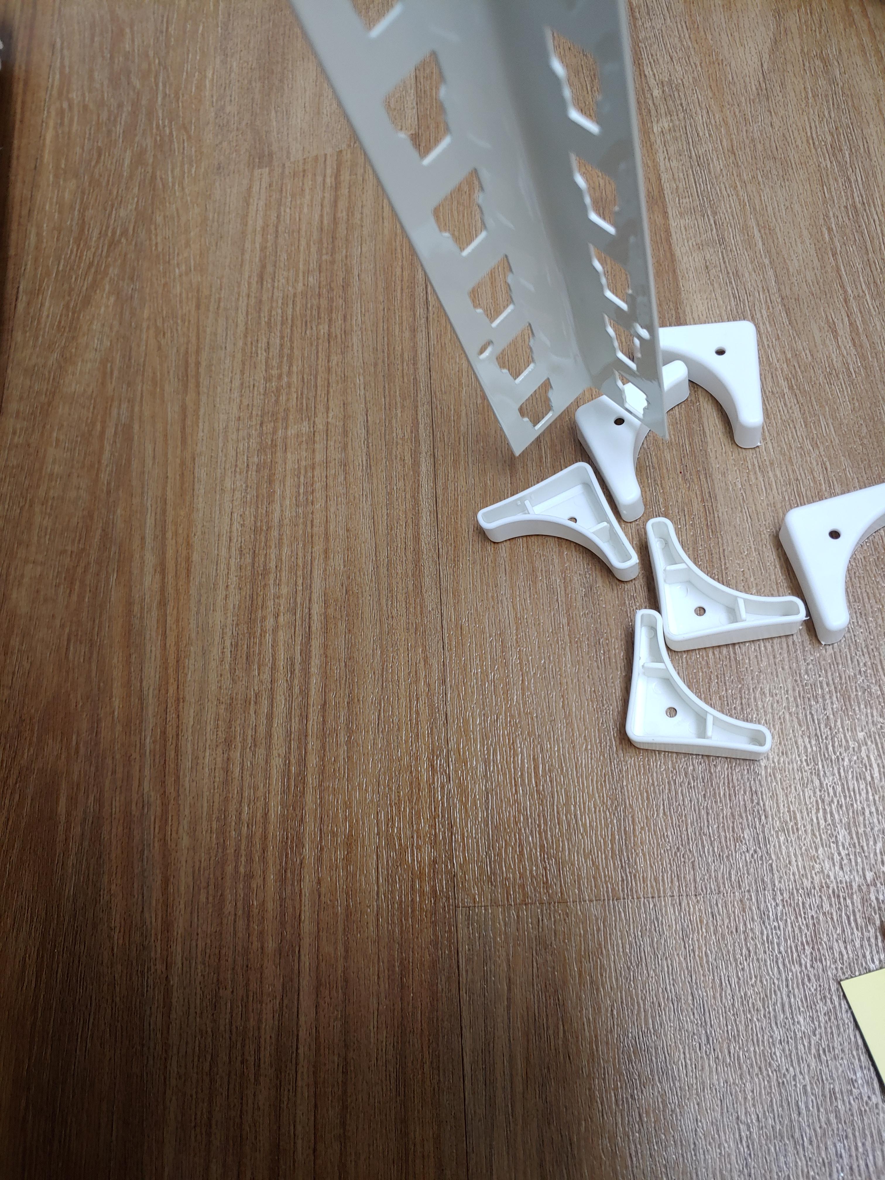 긴 기둥이 될 철재앵글이 왔어요. 흰색으로 구입(검정도 있으나, 냉장고 색깔을 고려하여 흰색으로 구입)했답니다.