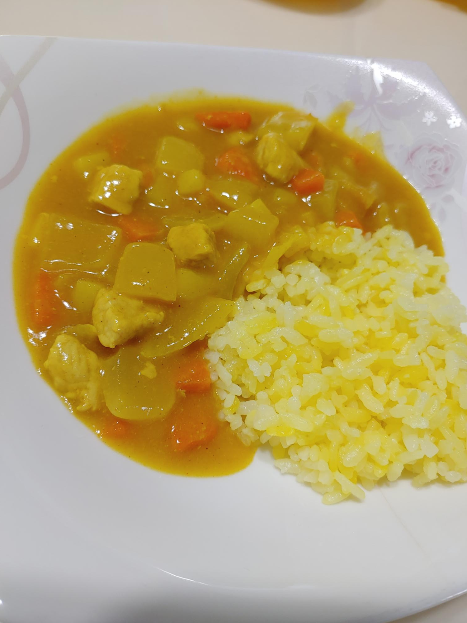 카레전문점에 가면 나오는 노란밥에, 노란 카레를 얹어, 노란단무지를 곁들여 먹었더니