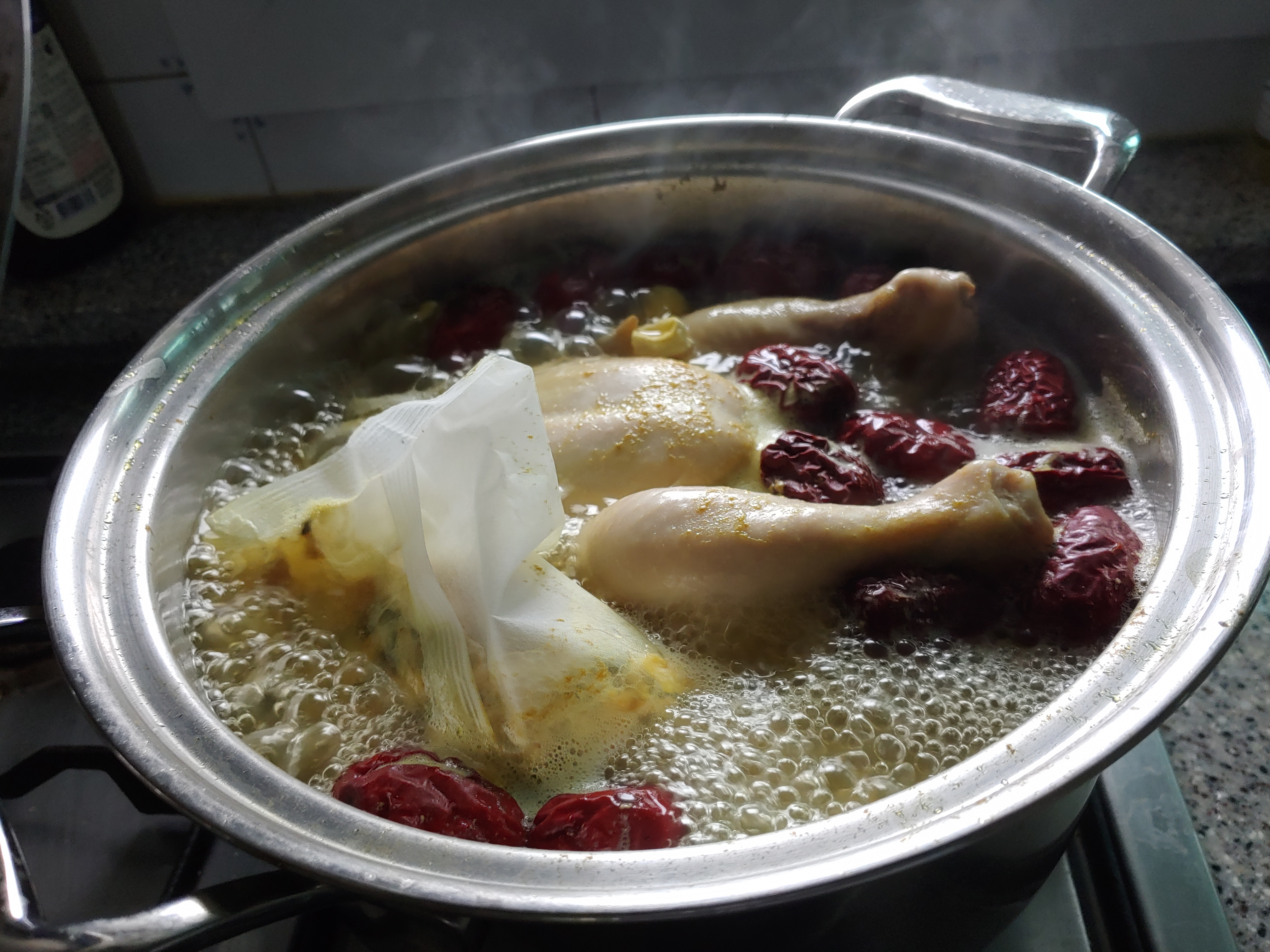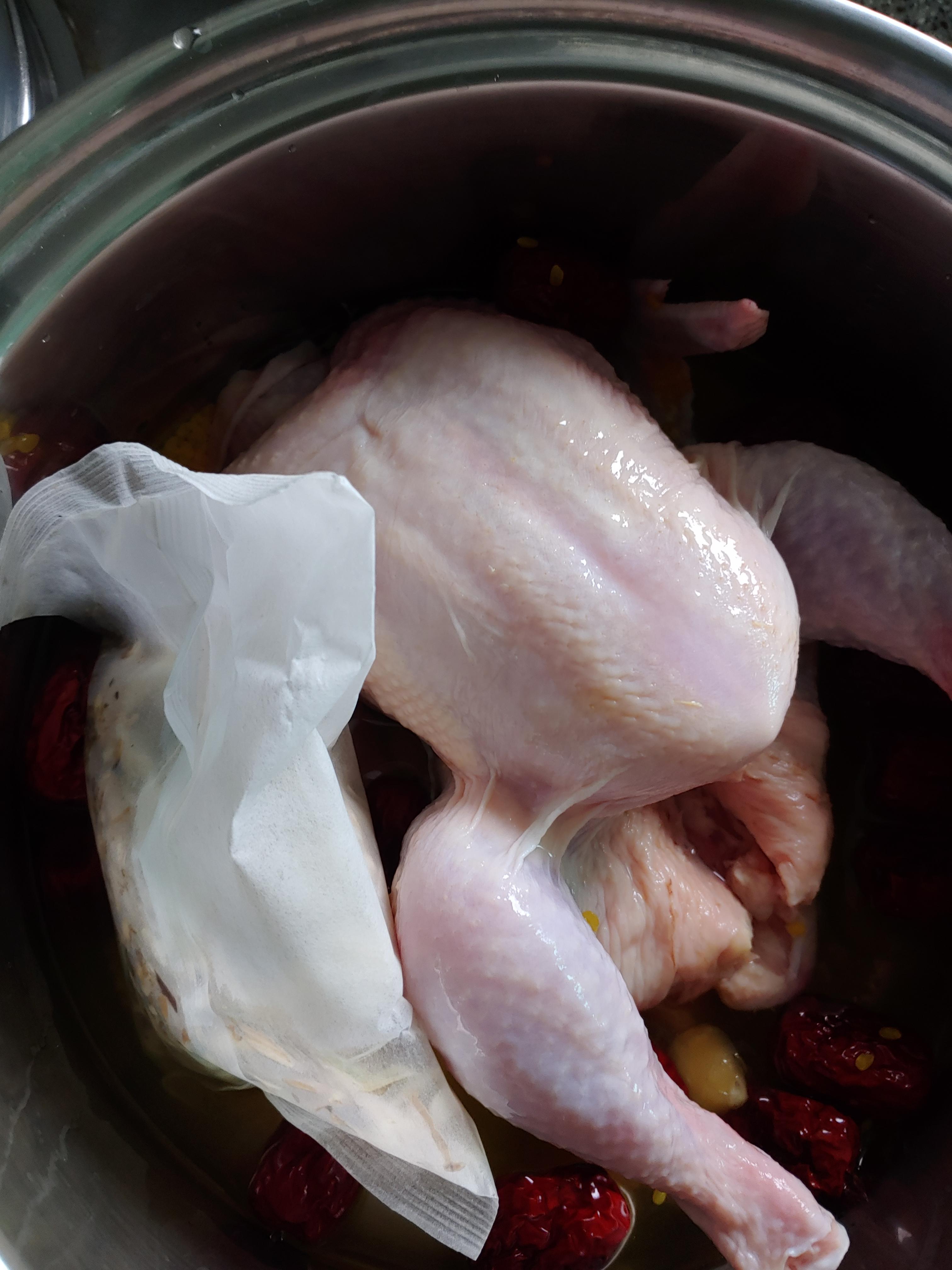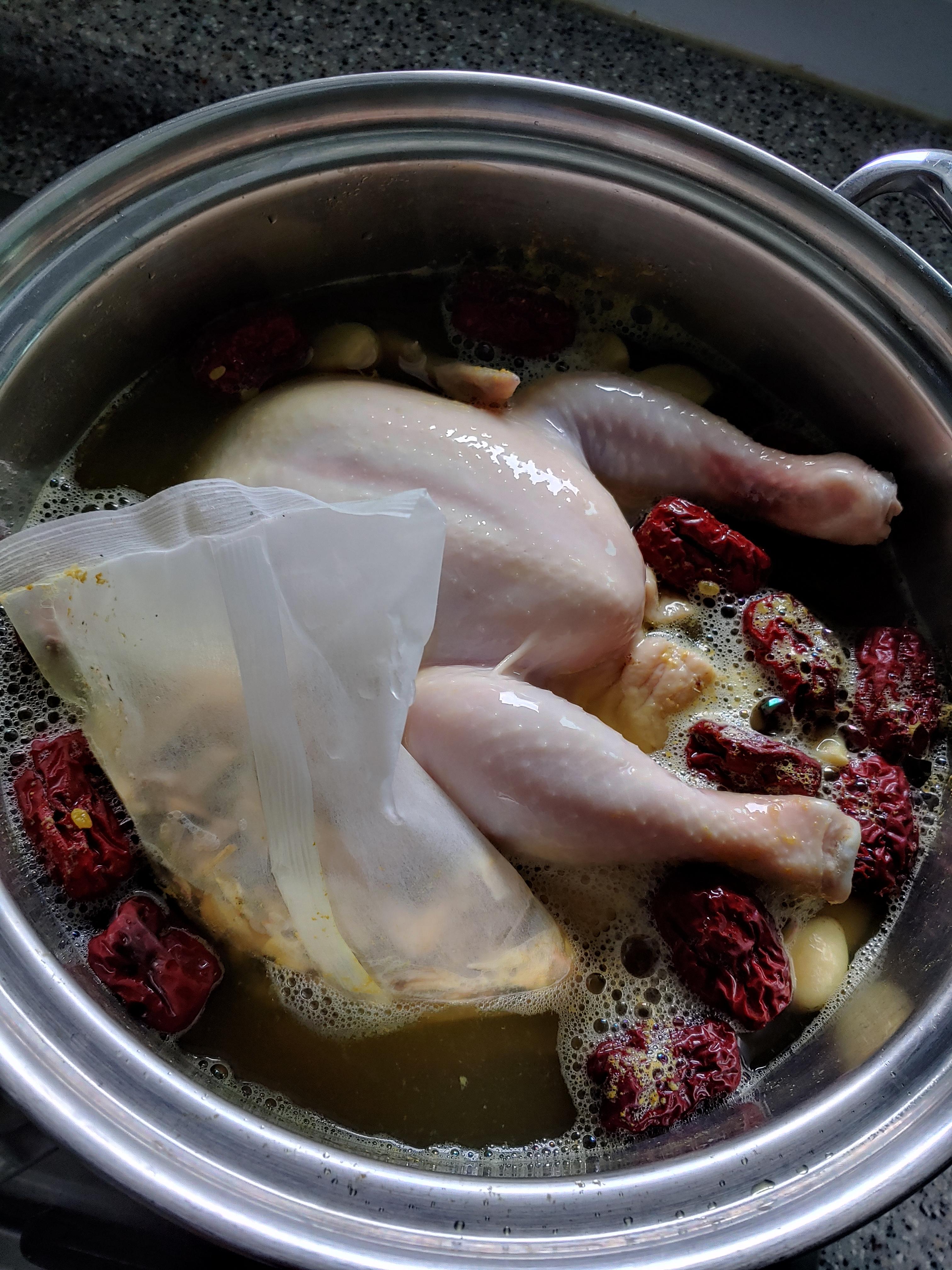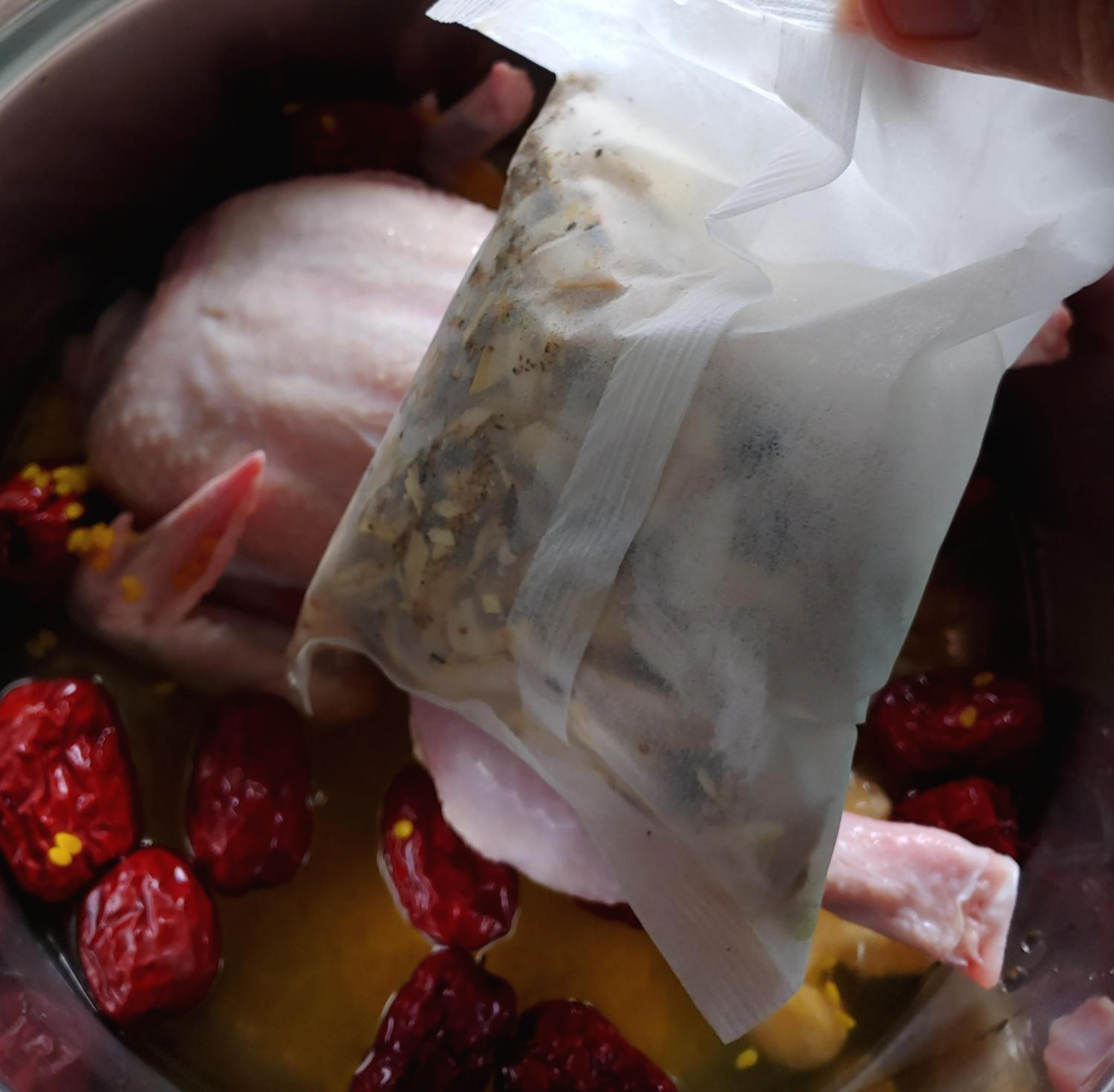 티백 잘 넣어주고, 닭 넣고,