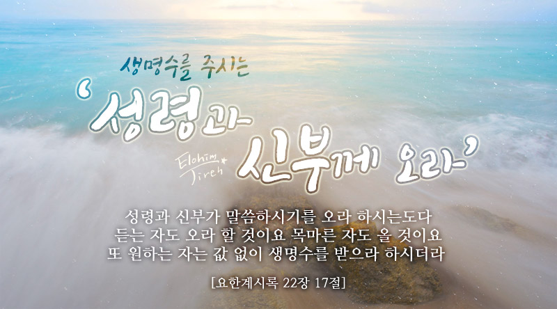 성령과 신부가 생명수를 주시는데, 그렇다면 성령이신 아버지 하나님과 예루살렘 성전이 생명수를 준다는 말일까요?