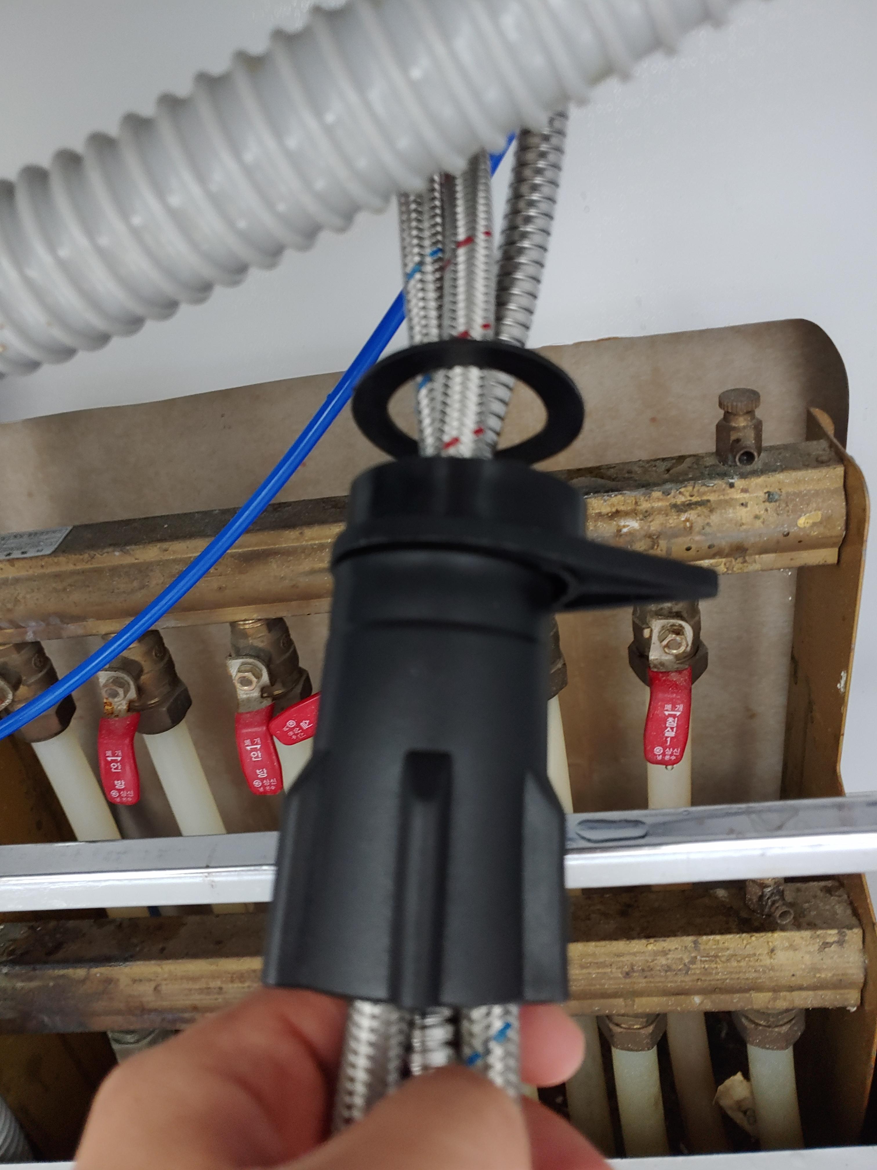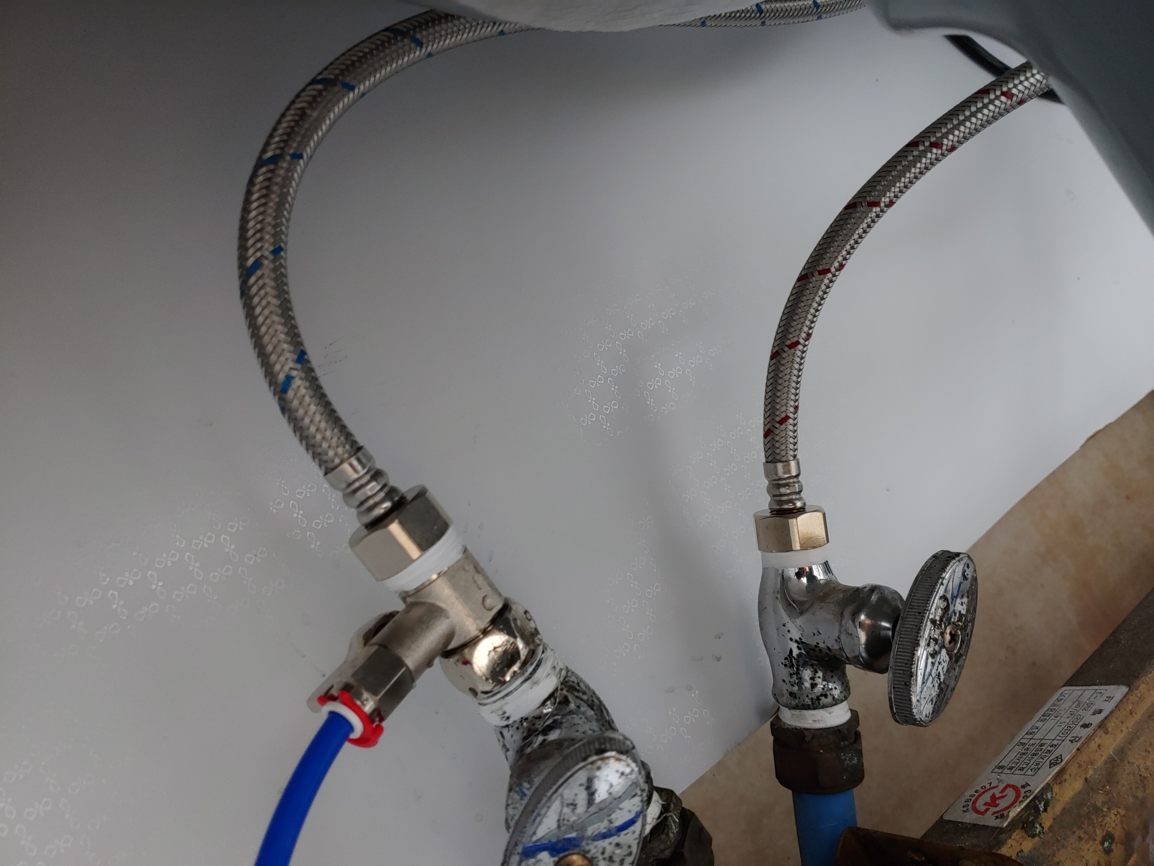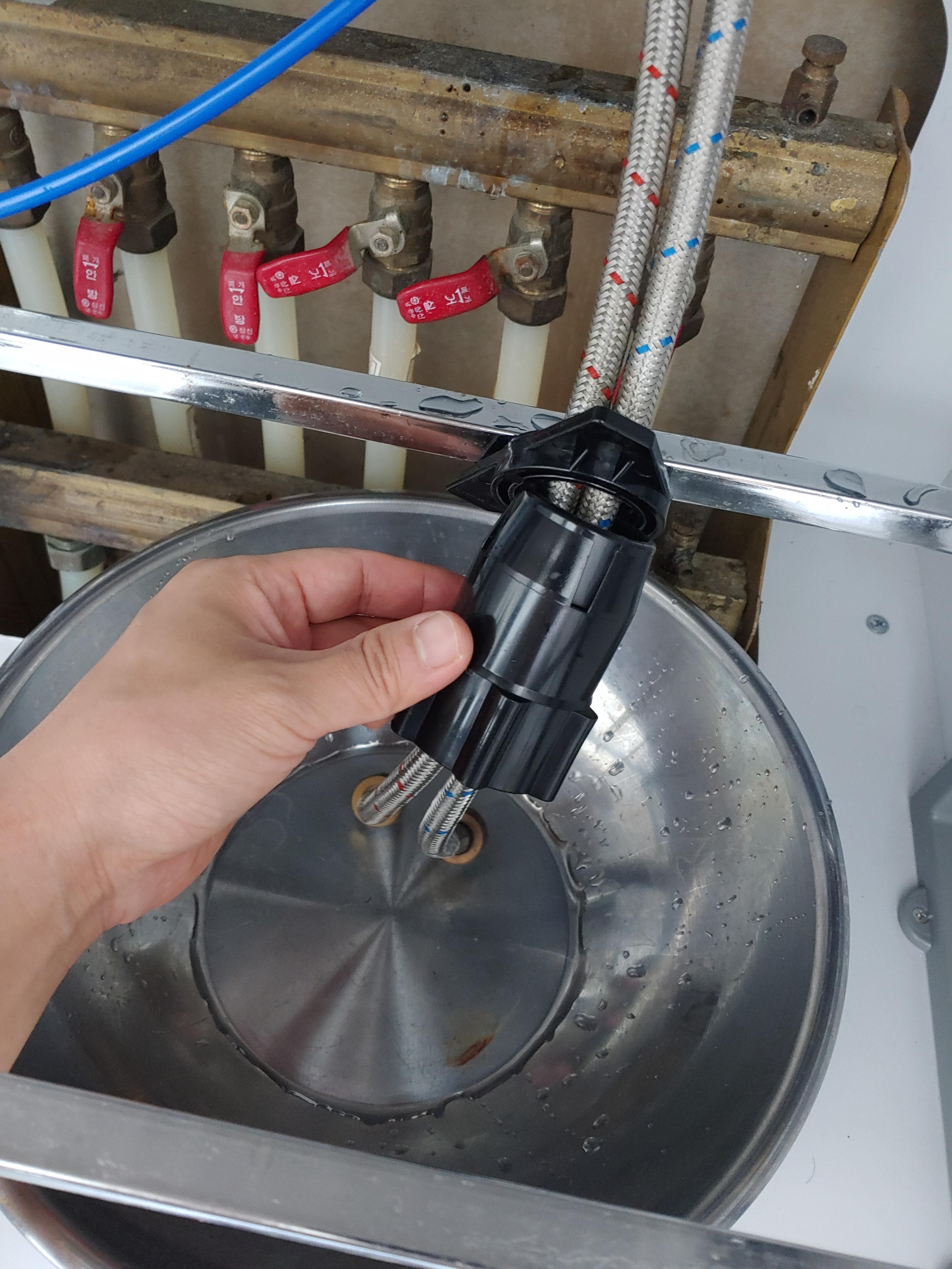16. 이제 냉수관과 온수관에 수전과 연결된 냉,온수관을 연결시켜 줍니다.
