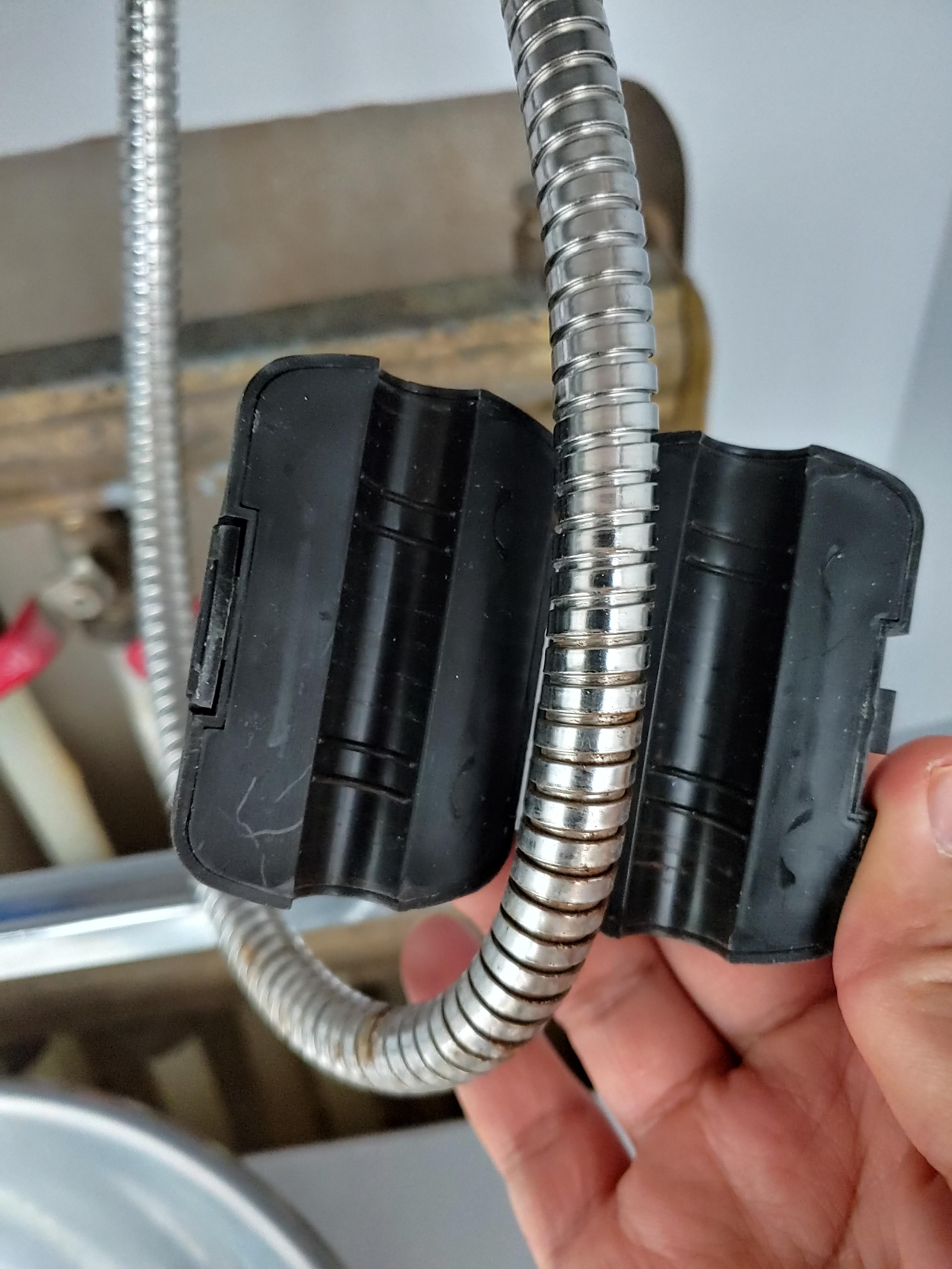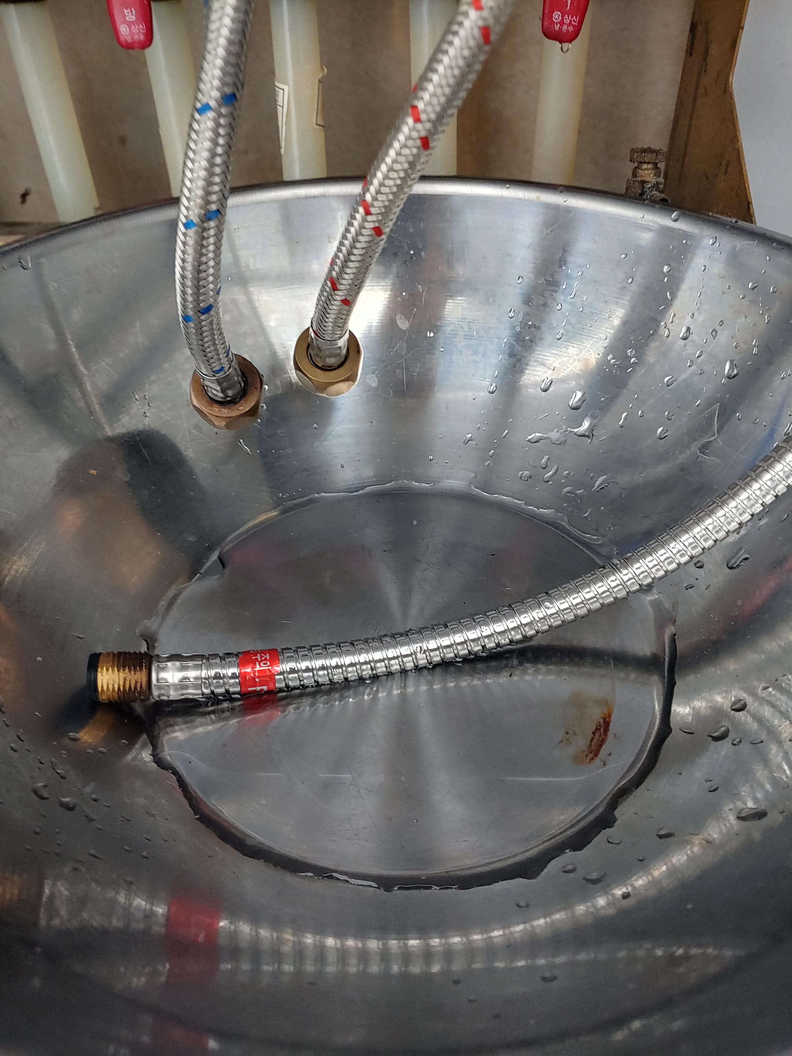8. 온수관도 풀어주세요. 역시 관 속에 소량의 물이 남아 있으니 빼줍니다.