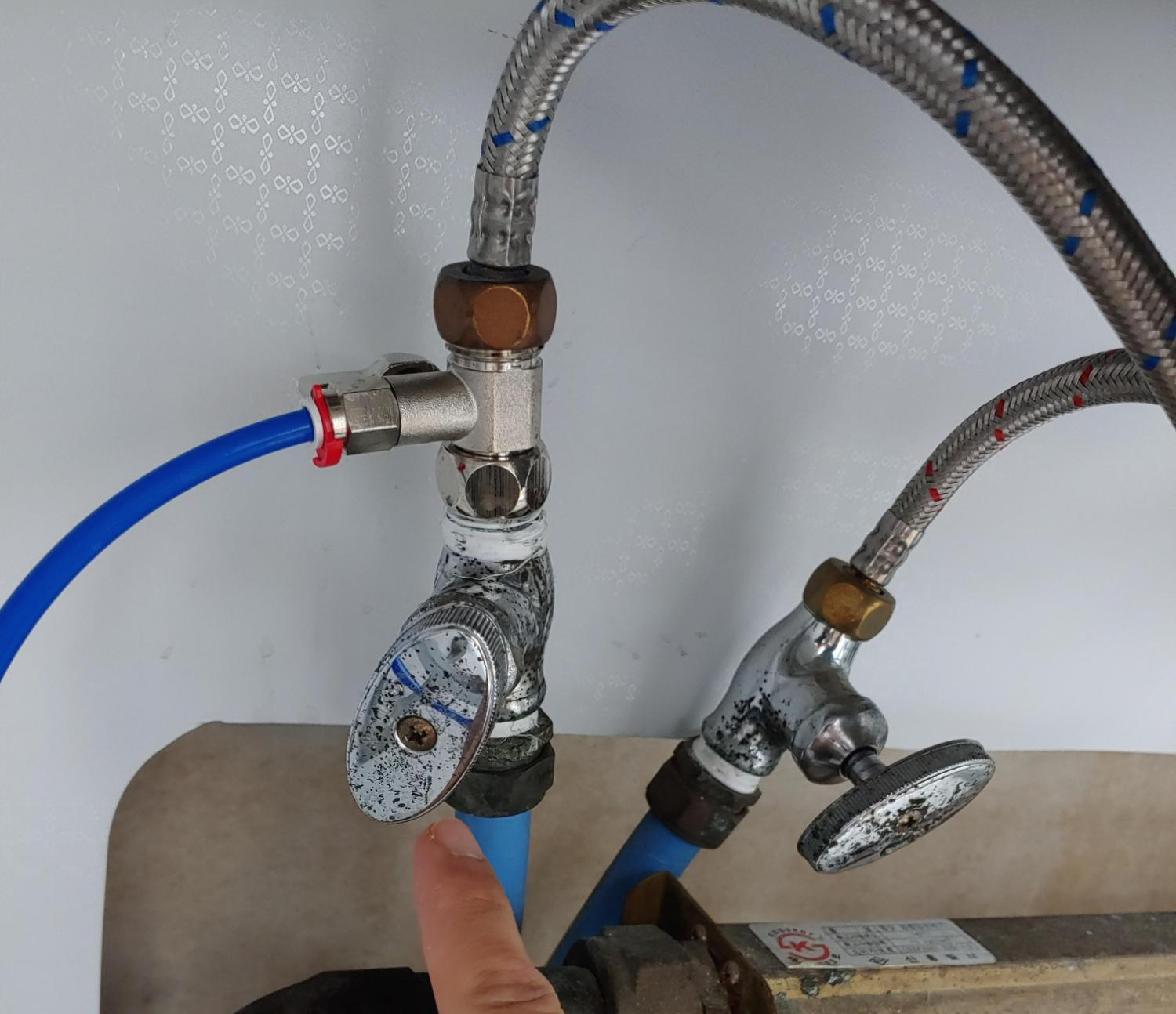 3. 가장 먼저 수도밸브를 잠급니다. 냉수, 온수 두개가 있습니다. 모두 잠궈주세요.