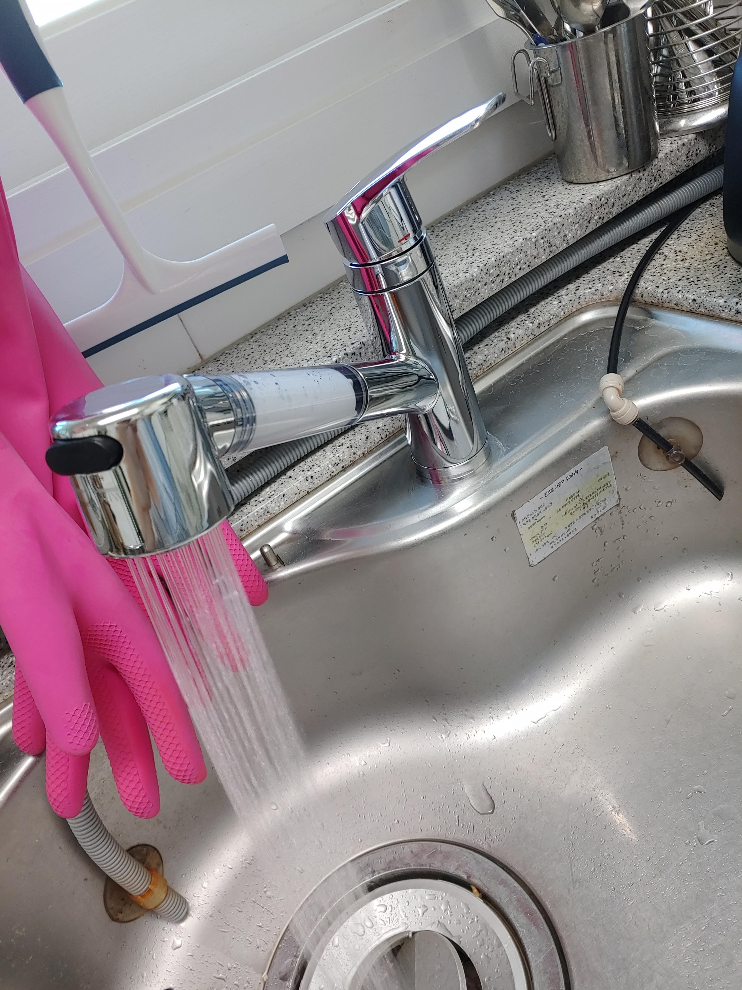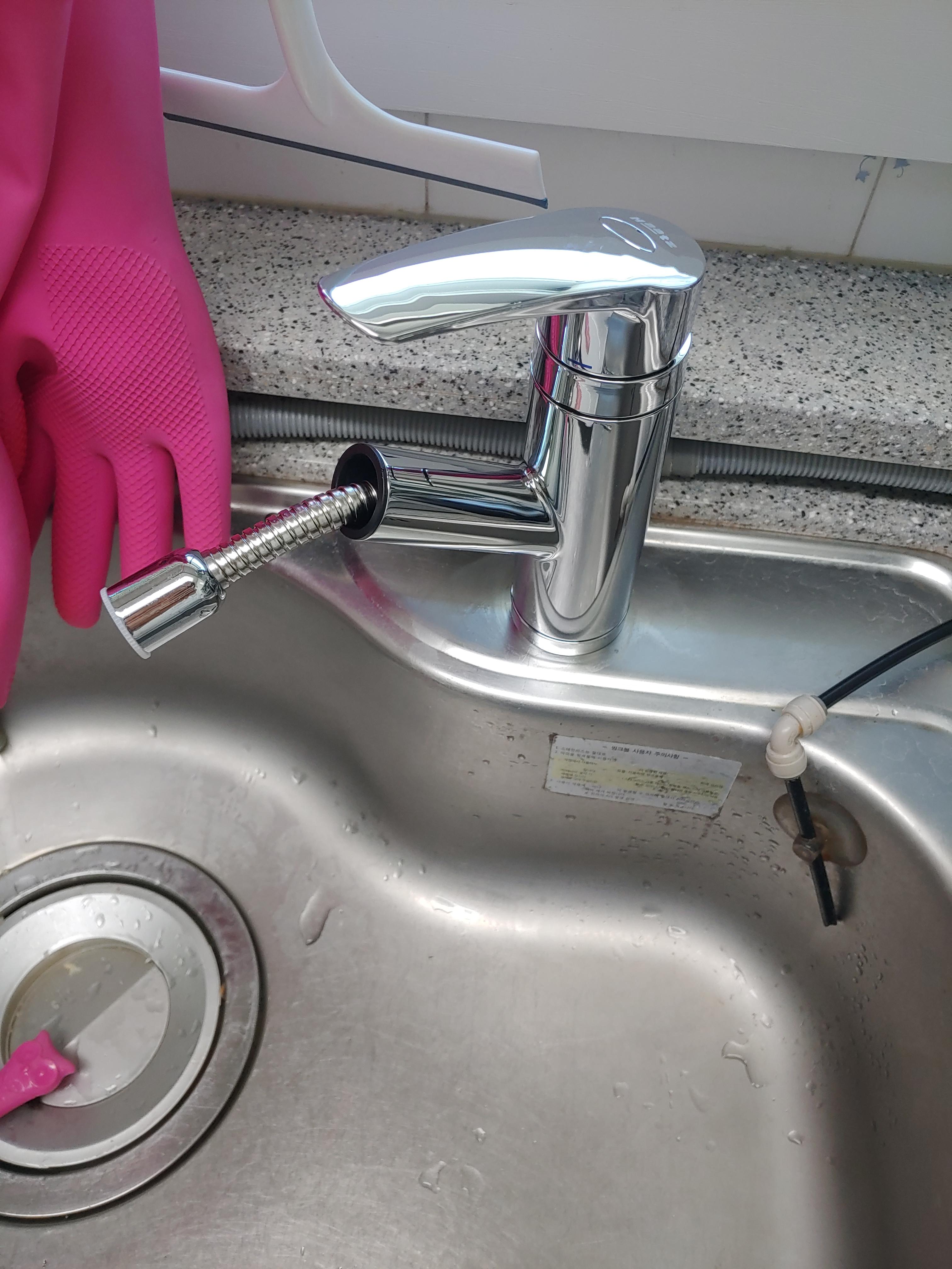 낡고 오래된 싱크대 수전을 교체하였습니다.