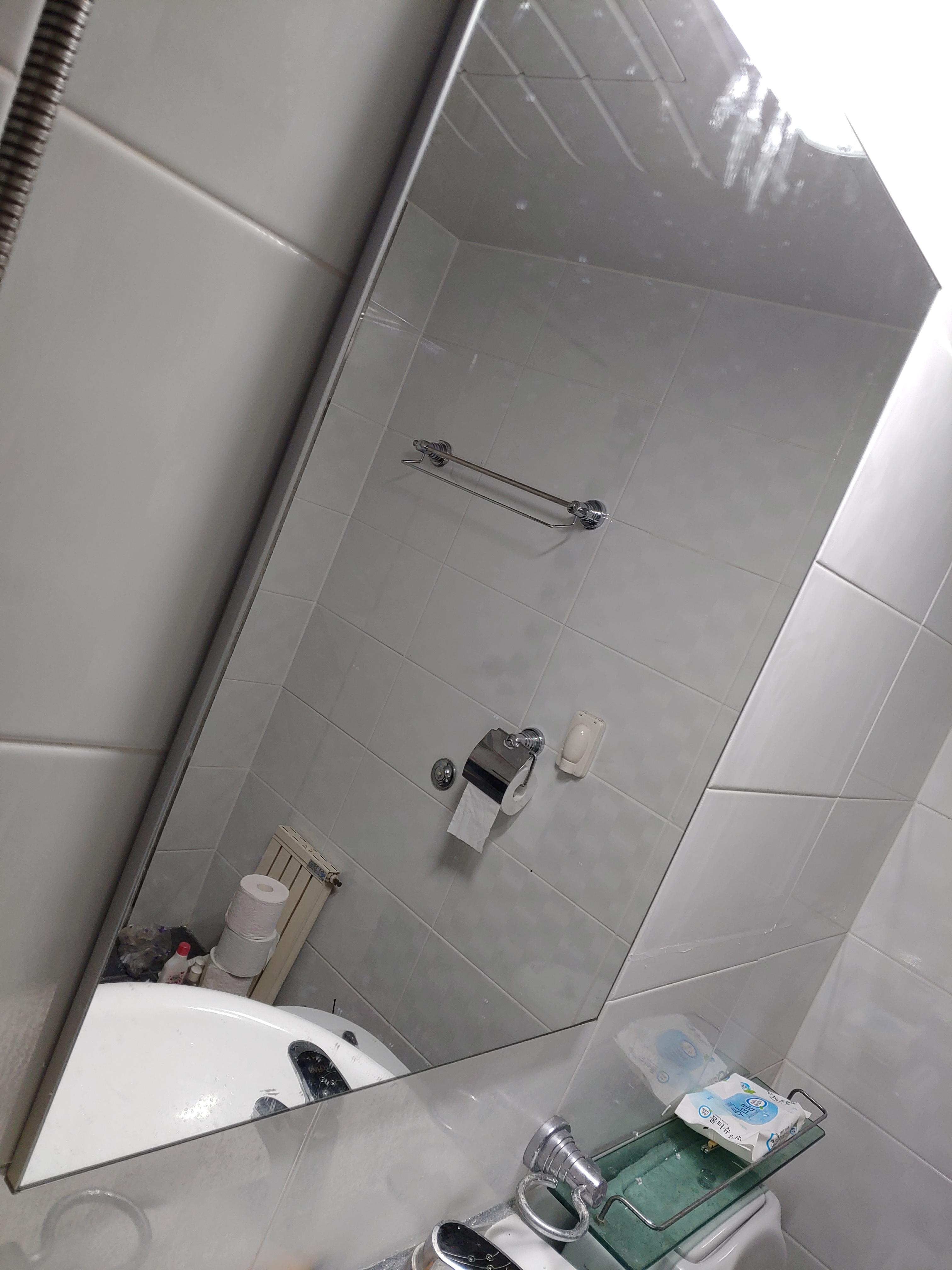 10. 기존 수납장에서 뗀 거울을 걸었습니다. 이 거울은 새 제품이 아닙니다. 기존 수납장에서 뗀 거울이죠.