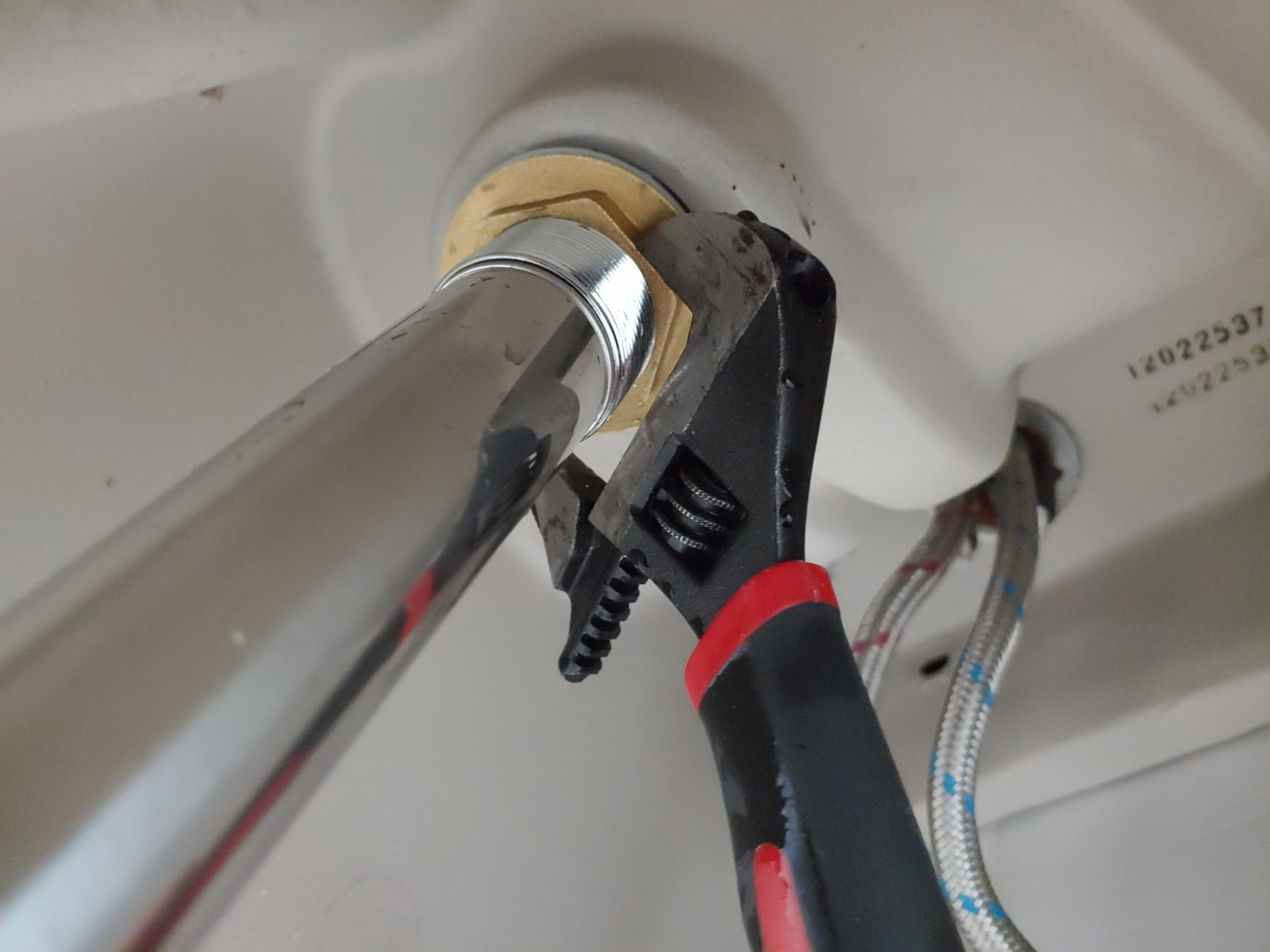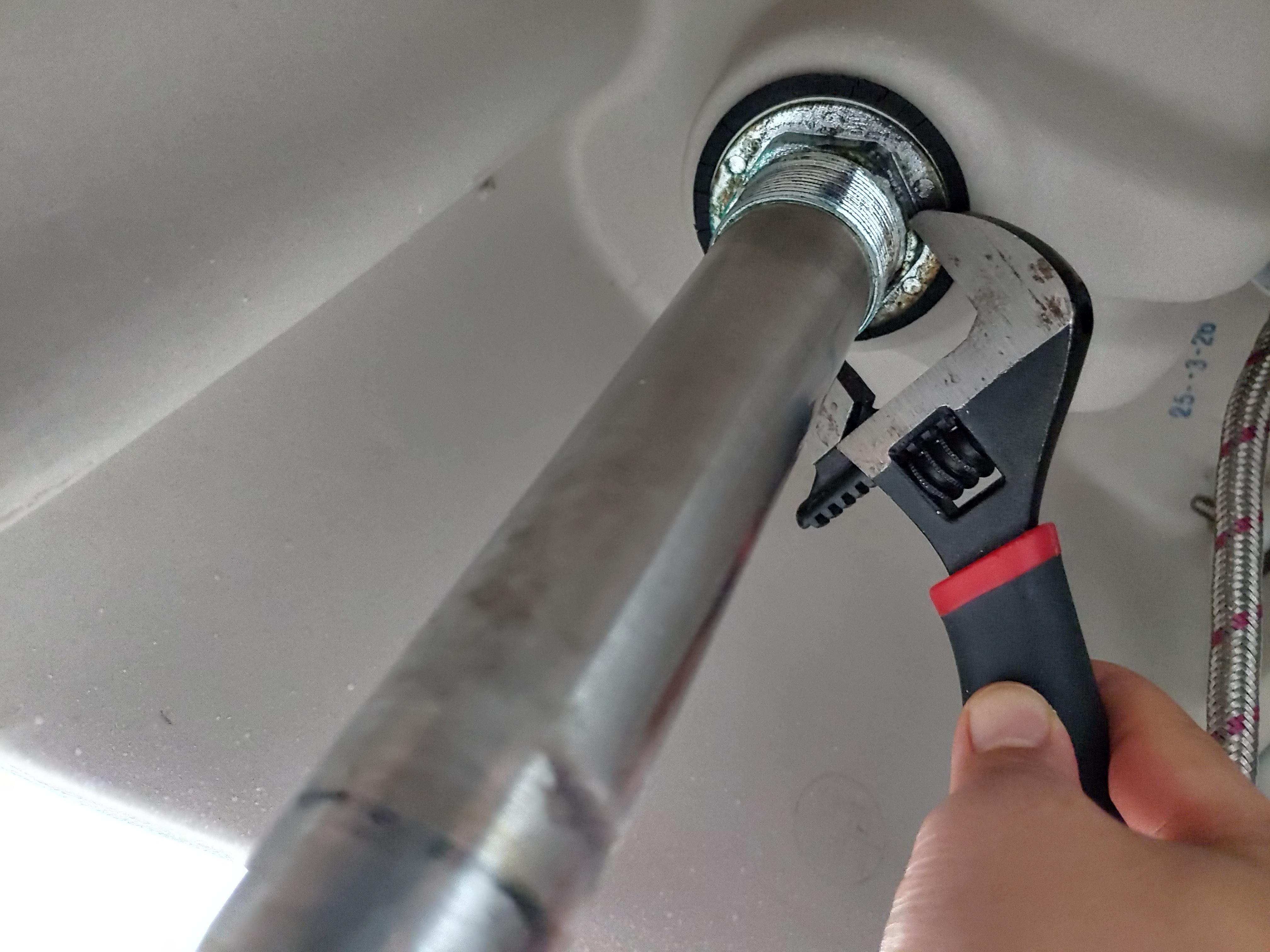 6. 세면대 아래에서 올려다보면 나사 하나가 있습니다.