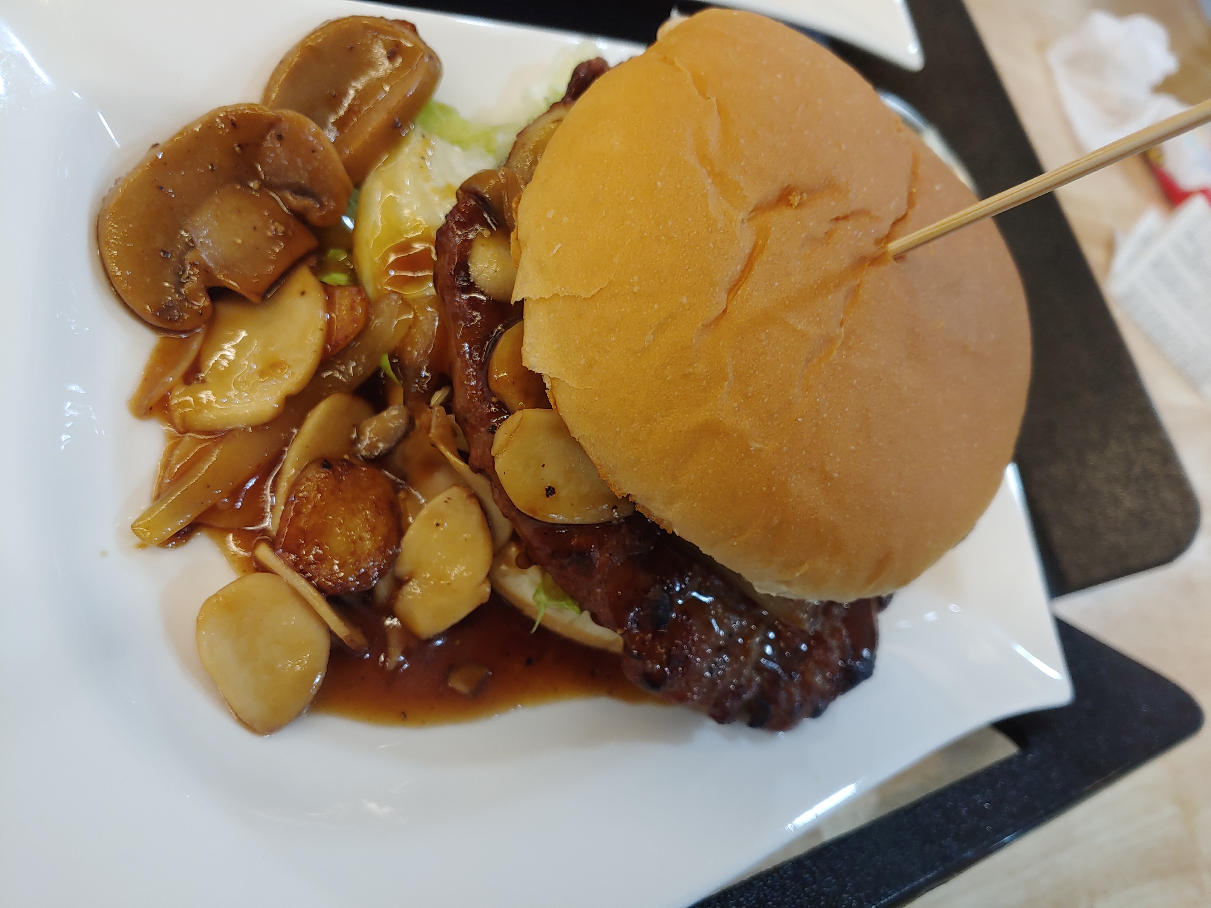 버섯과 햄버거가 은근히 잘 어울린답니다.