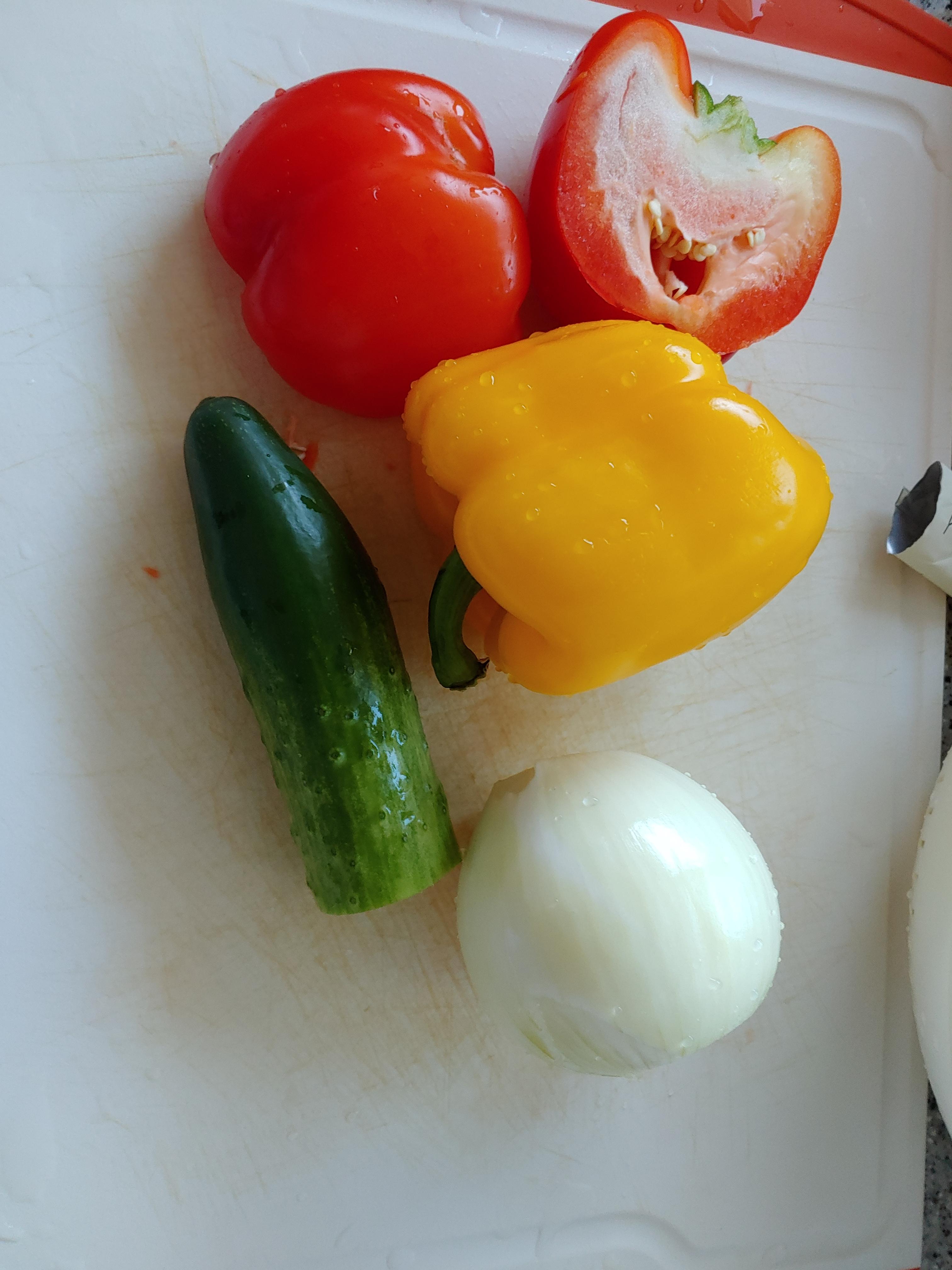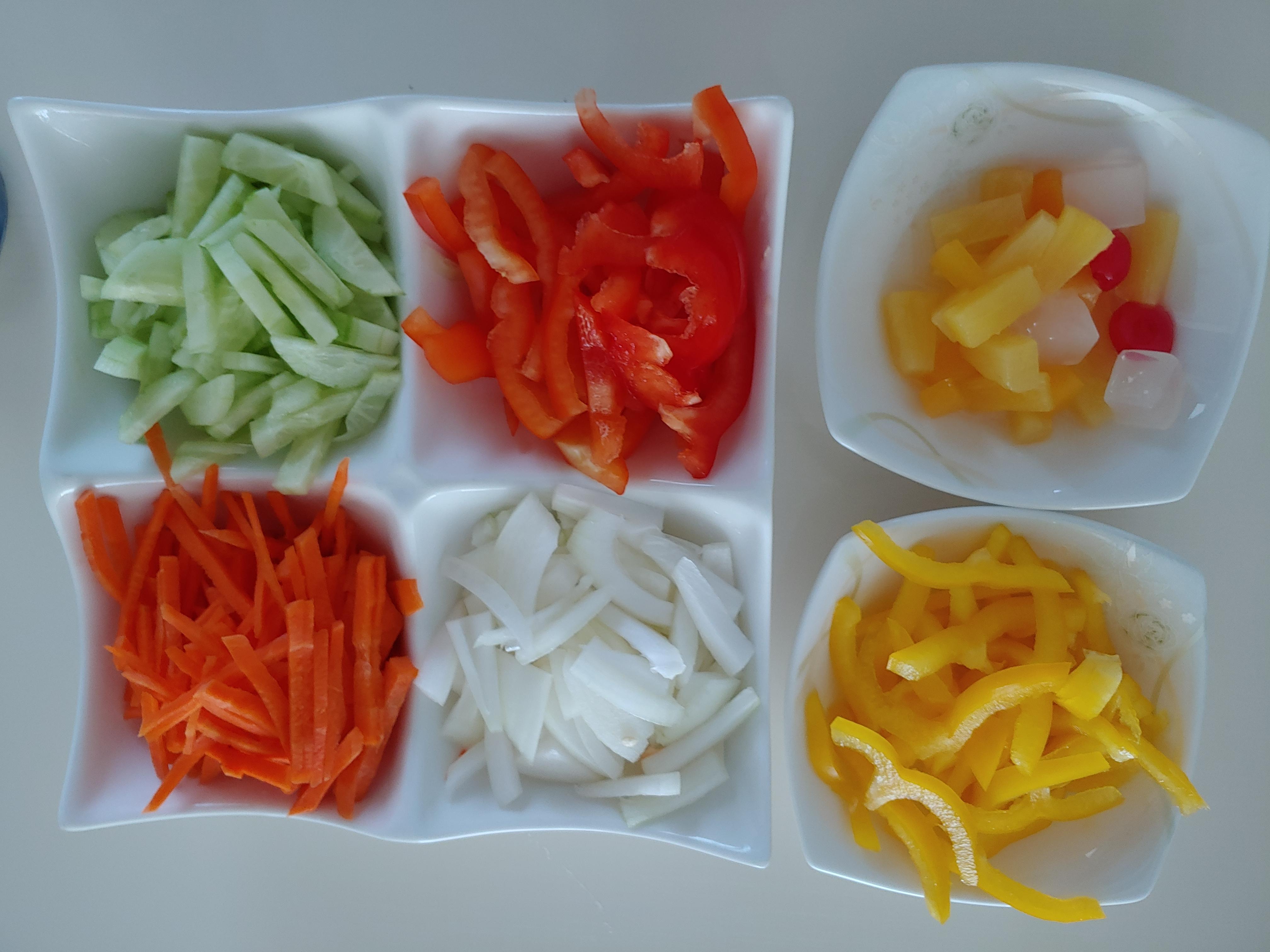 2. 각종 야채 썰기, 파프리카, 오이, 양파, 당근 등~~