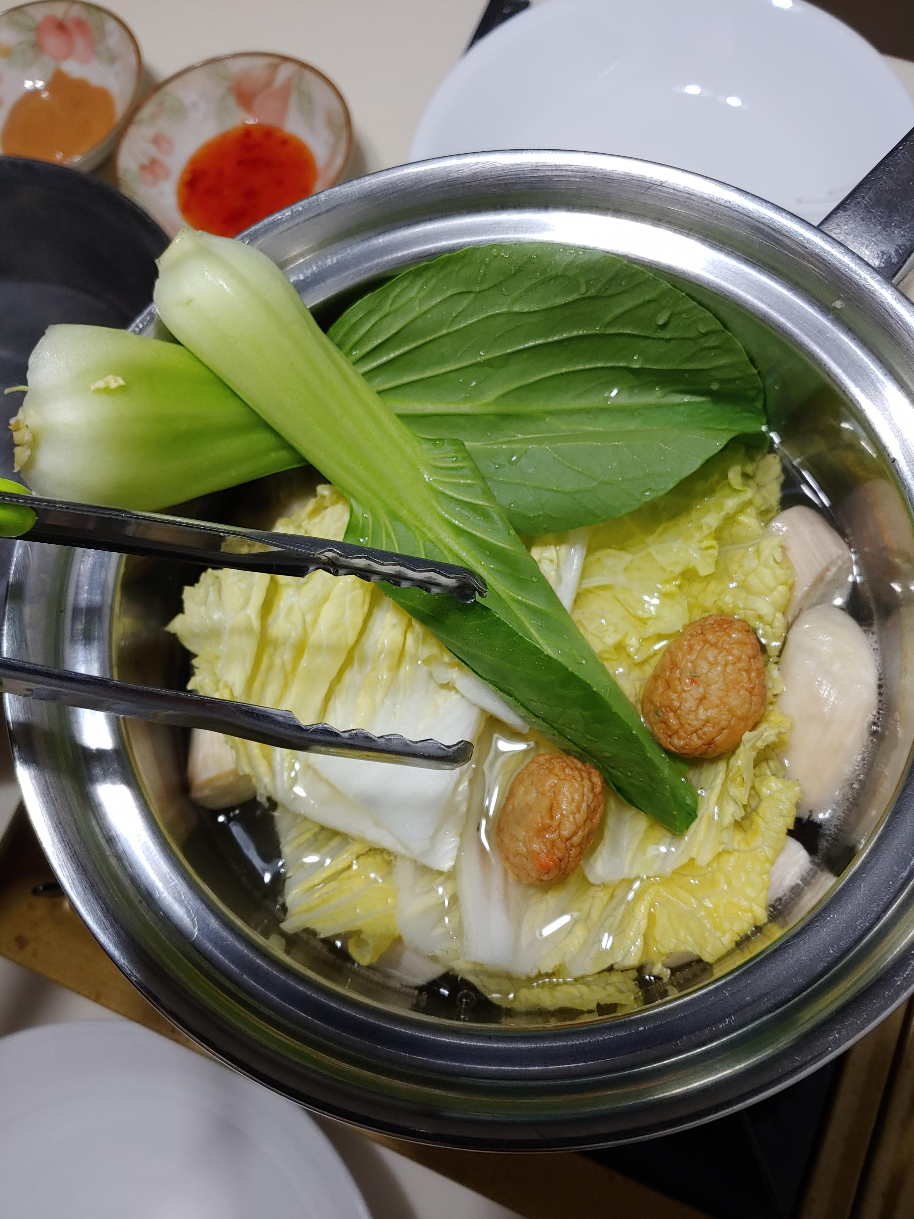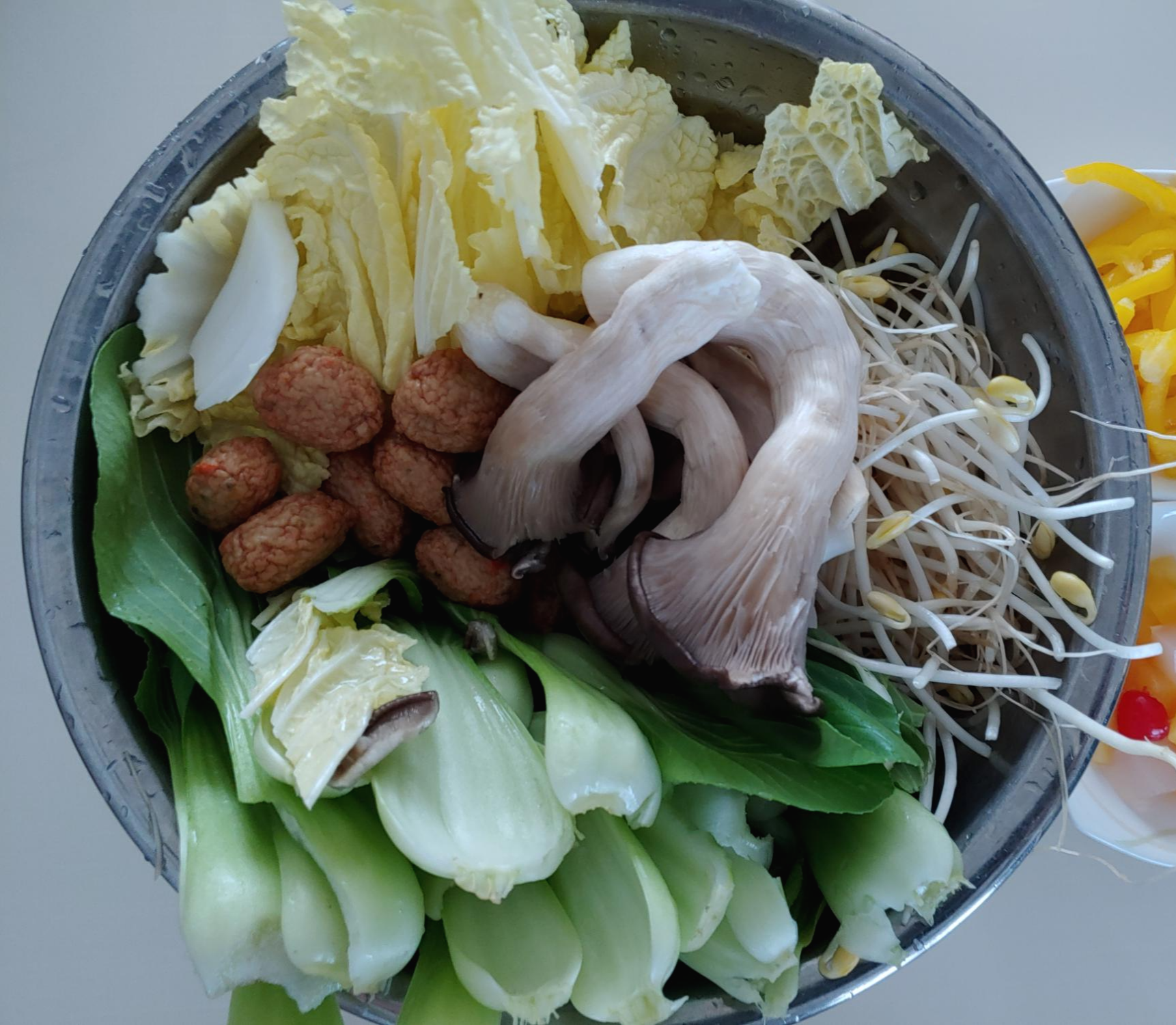 3. 샤브샤브. 끓여먹을 야채 준비합니다. 배추, 버섯, 어묵, 청경채, 콩나물 등