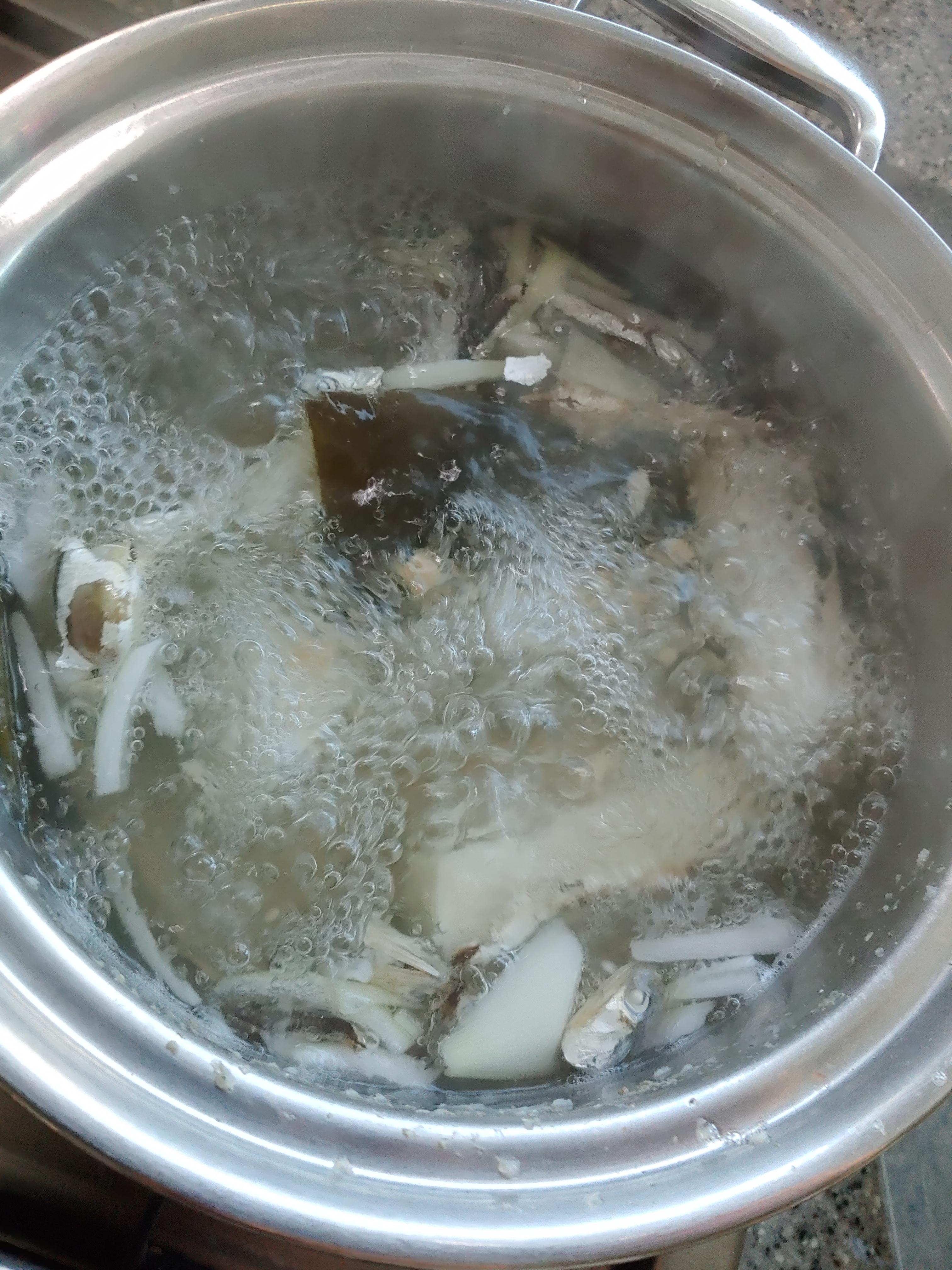 1. 육수를 끓인다. 보글보글 30분 정도 끓였습니다. 무, 멸치, 다시마를 넣었습니다.
