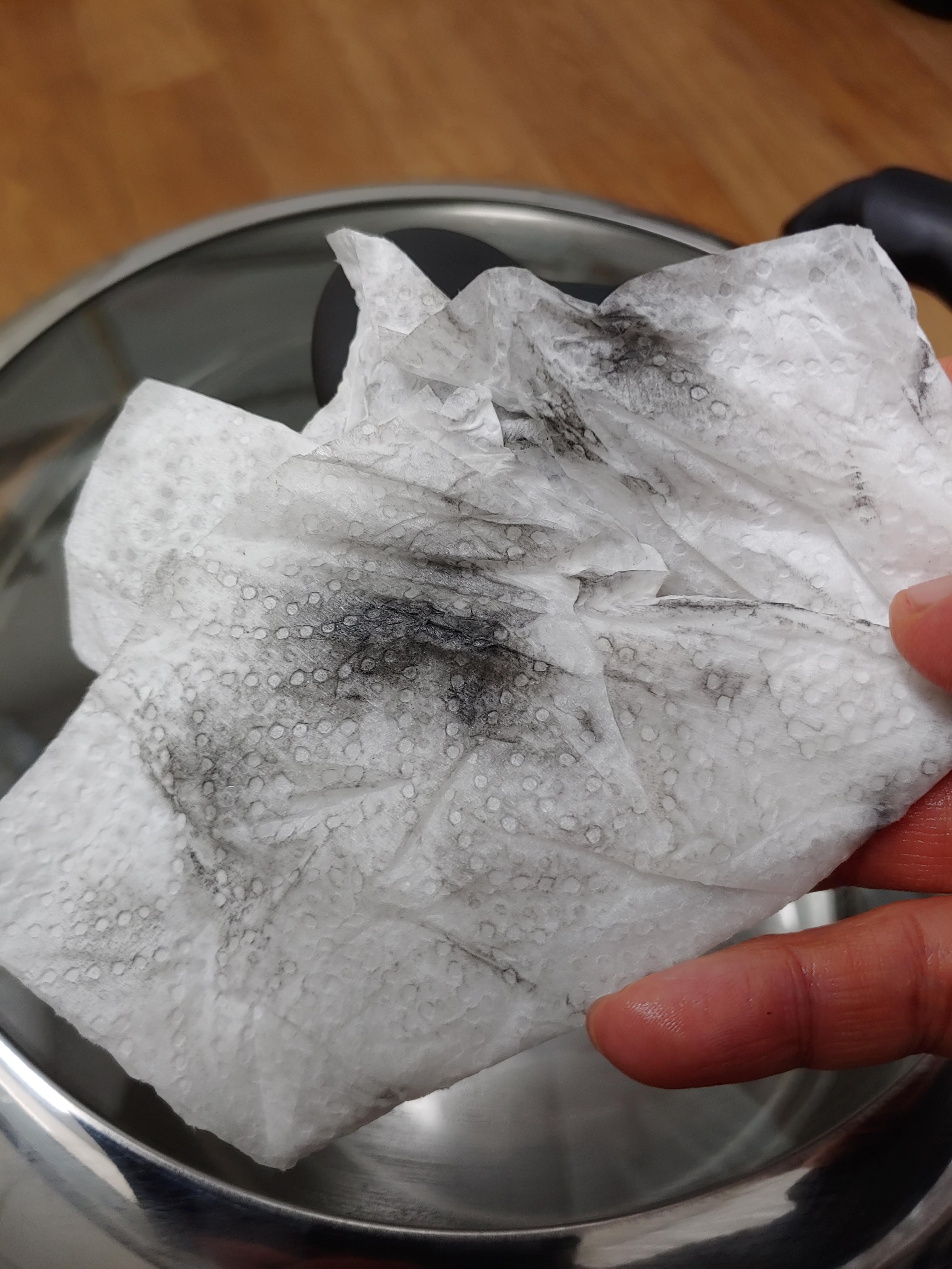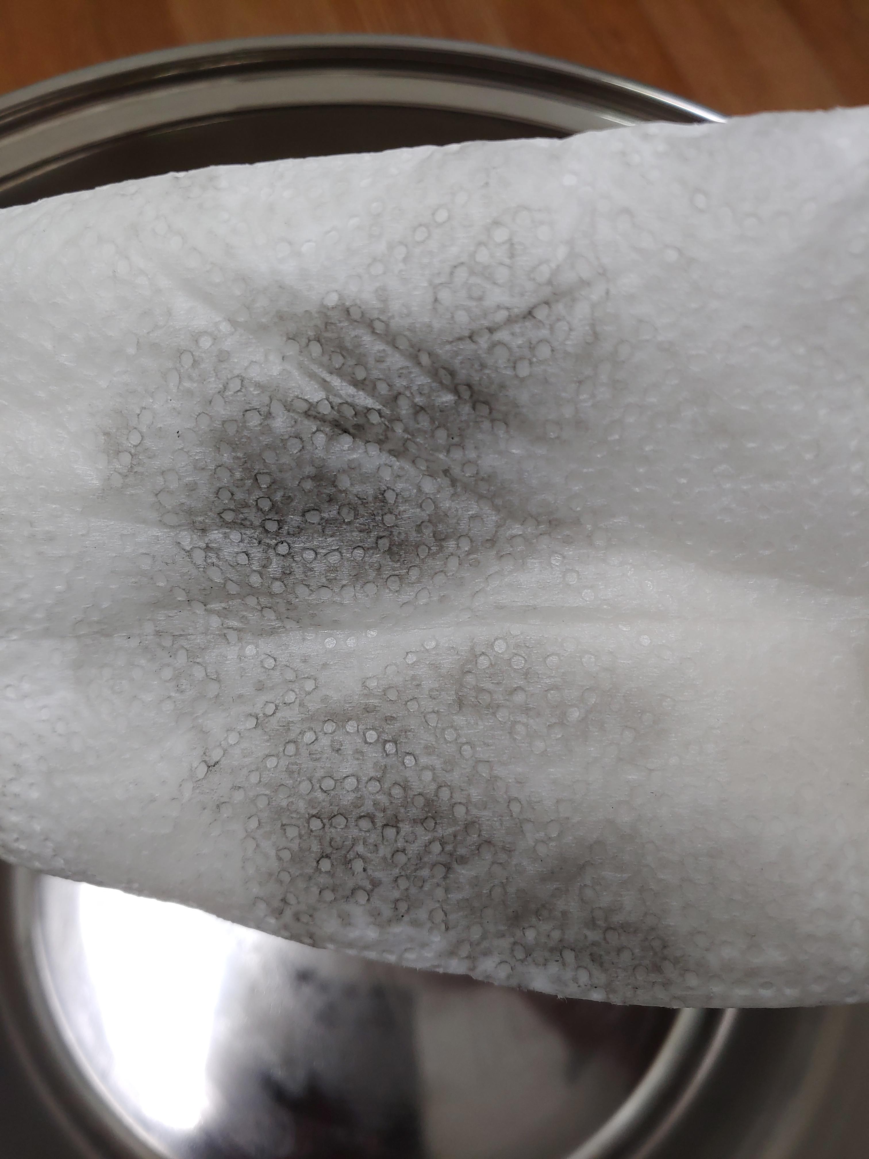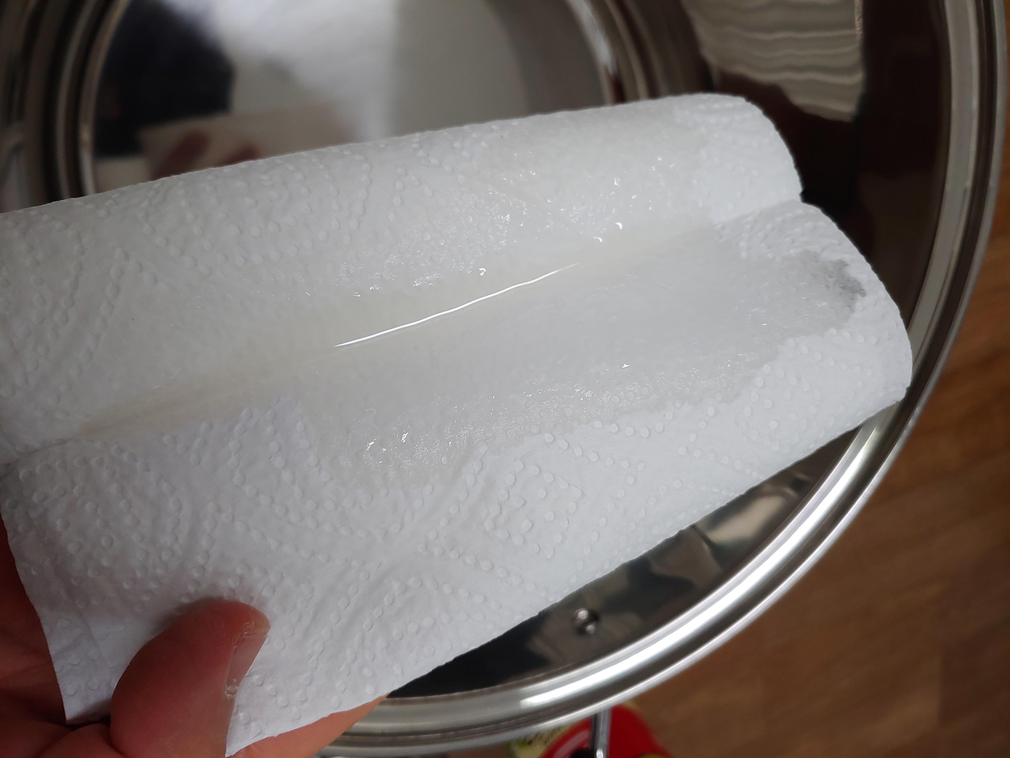 1차 : 식용유를 묻힌 키친타올로 닦는다. 충분히 닦은 후에 깨끗하게 주방세제로 식용유의 기름기 제거하고