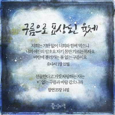 유다서 1장 11~12절 가인의 길…발람의 길…고라의 패역…자기 몸만 기르는 목자요…물 없는 구름이요
