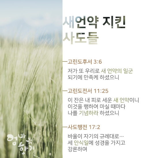 새언약의 일꾼. 새언약으로 만드시 거룩한 유월절. 바울도 전도여행중 세번째 안식일을 지키는 장면들. 성경 곳곳에 새언약이 기록되어 있습니다. 하나님의교회는 그래서 안식일을 거룩하게 지킵니다.