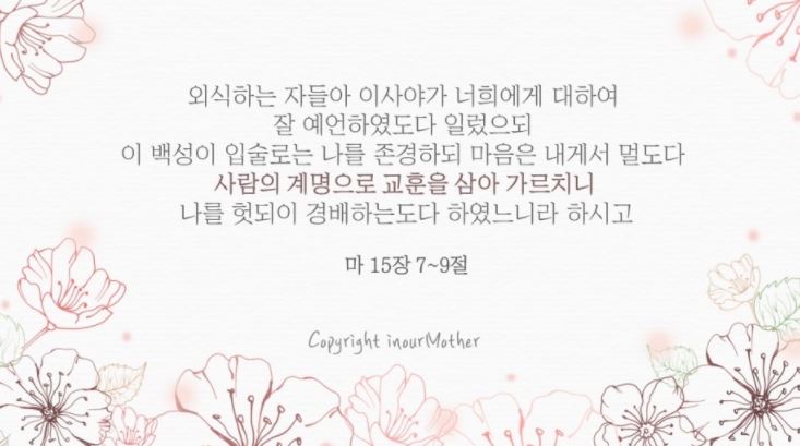 그리고 사람의 계명은 헛된 경배일 뿐입니다.(마15:7)