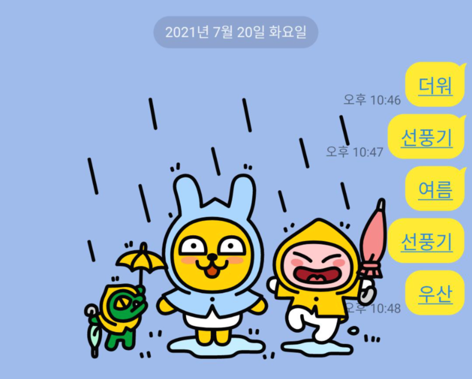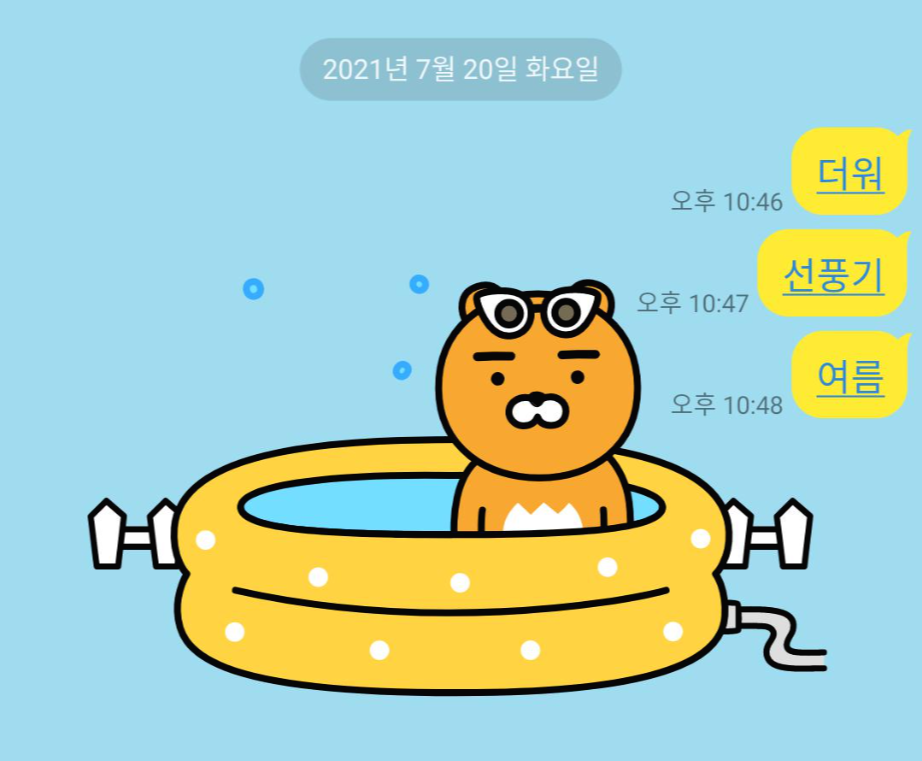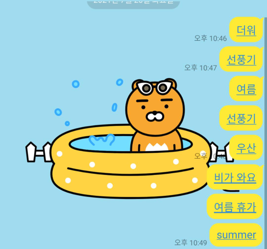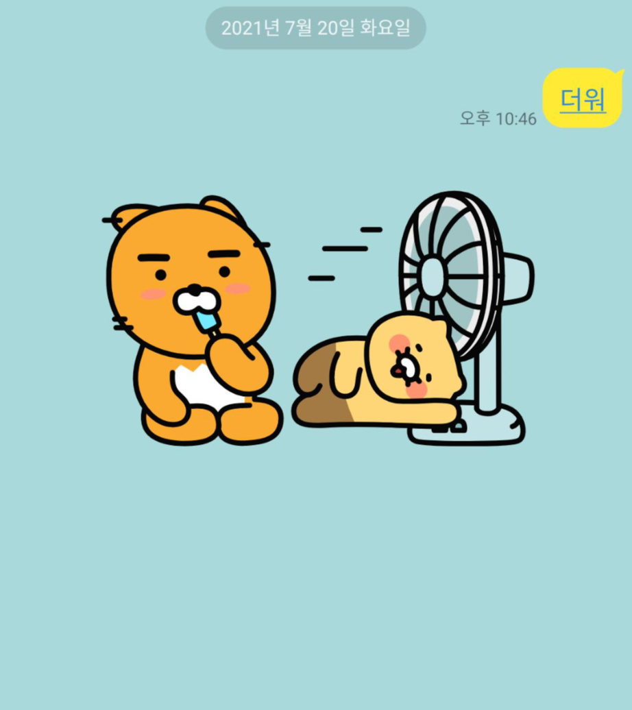 아래 그림처럼 "더워"를 치면 배경화면이 잠시. 저런 모습으로 바뀝니다.