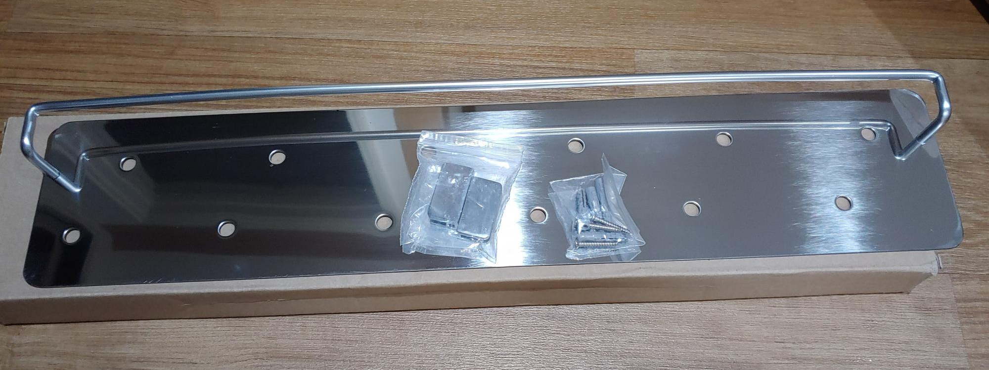 스텐일자선반의 장점은 브라켓과 스텐선반을 조여주는 나사가 납작한 나사입니다. 고무링도 필요없네요.