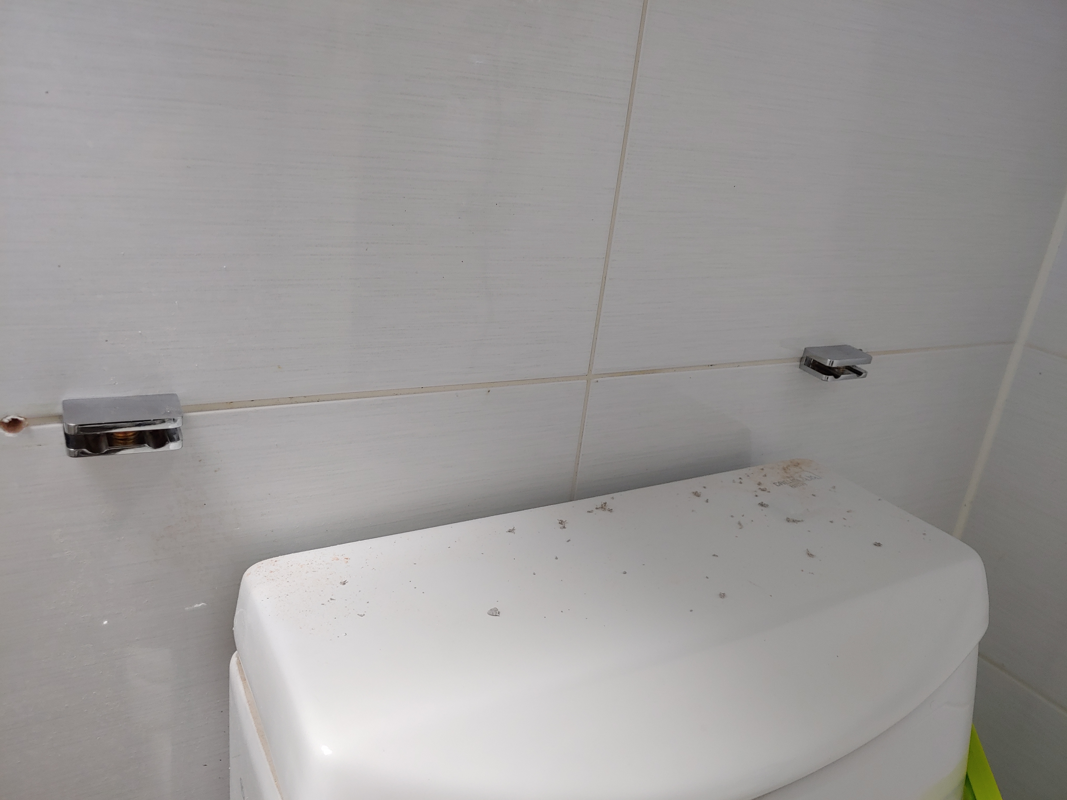흰색 줄눈 위치에 못을 박을 수 있어서 타일 깨질 염려 없이 뚫을 수 있었습니다.
