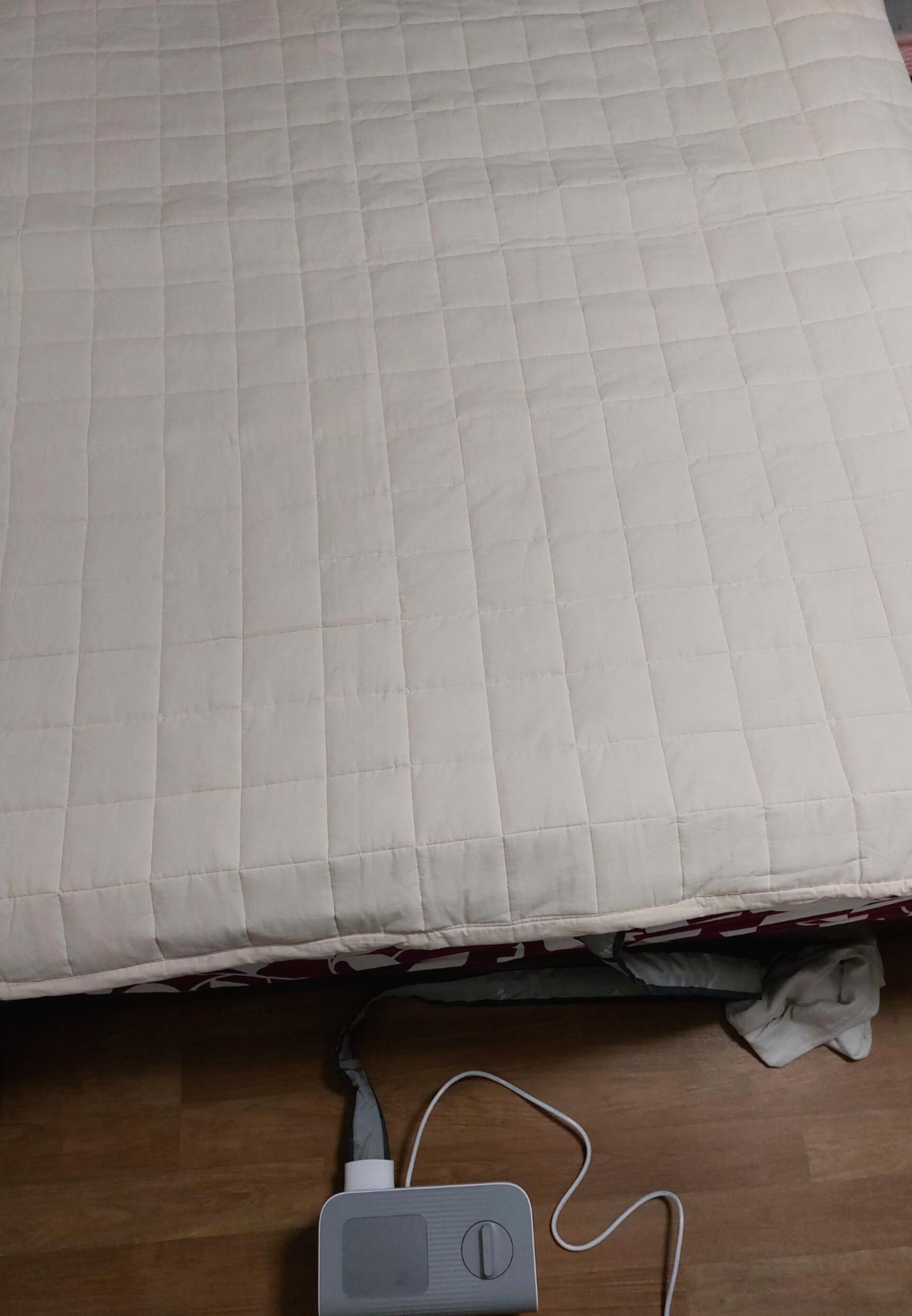 침대에 설치하고 발 아래쪽에 모터를 내려놓았습니다.