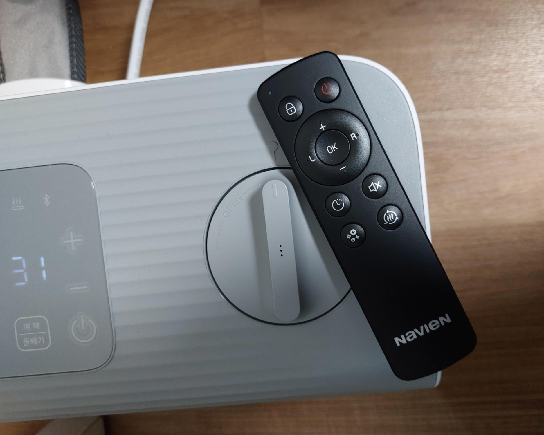 사실 블루투스(562모델)나 wifi(582모델)를 이용해서 스마트폰과 연결하여 사용할 수 있습니다. 리모컨이 있으면 집 안에서는 온수매트 근처에 리모컨을 비치해두면 되기 때문에 크게 블루투스나 와이파이 기능은 많이 사용하지 않을 것 같아요.