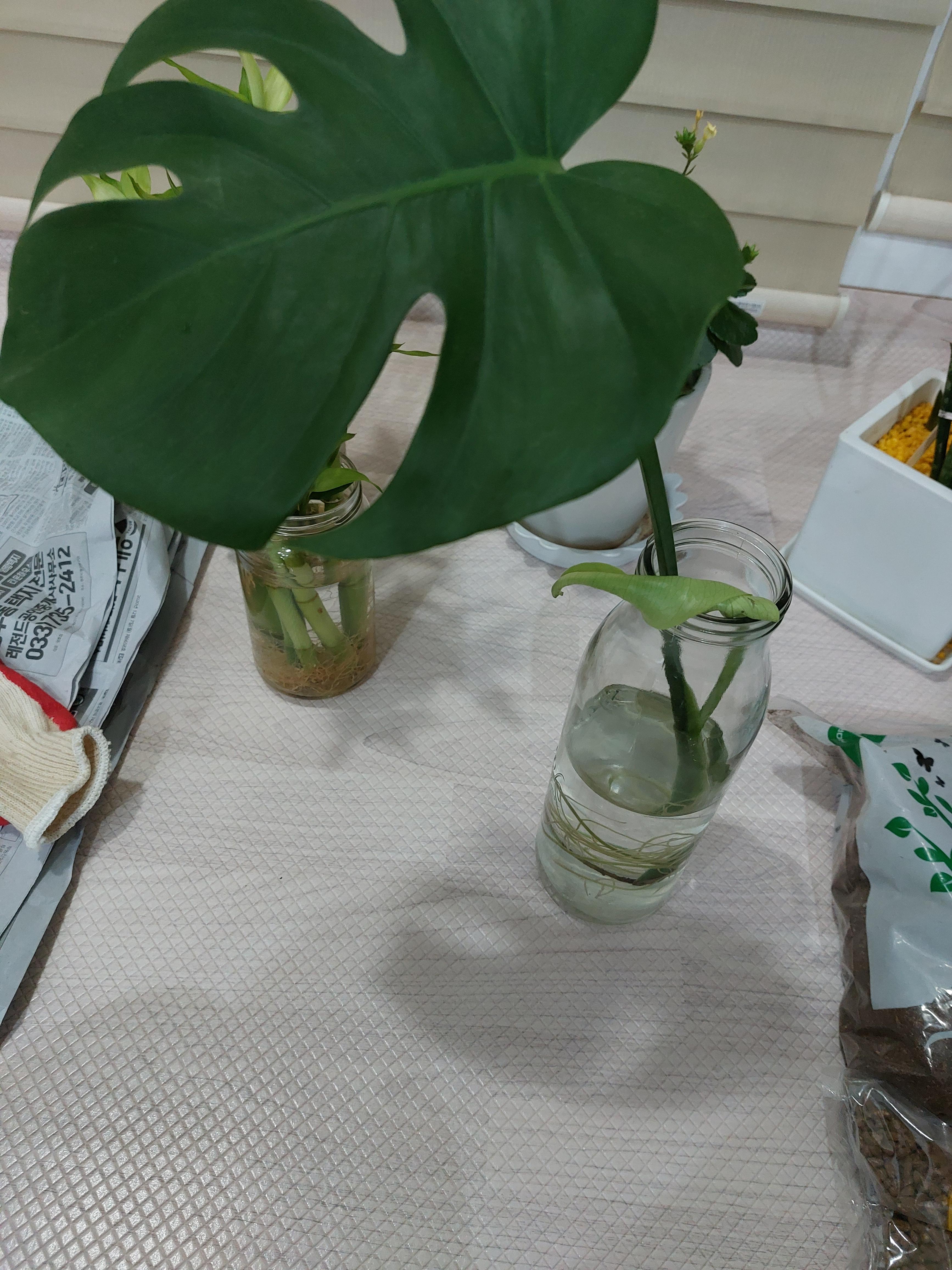 몬스테라를 옮겨 심었습니다.