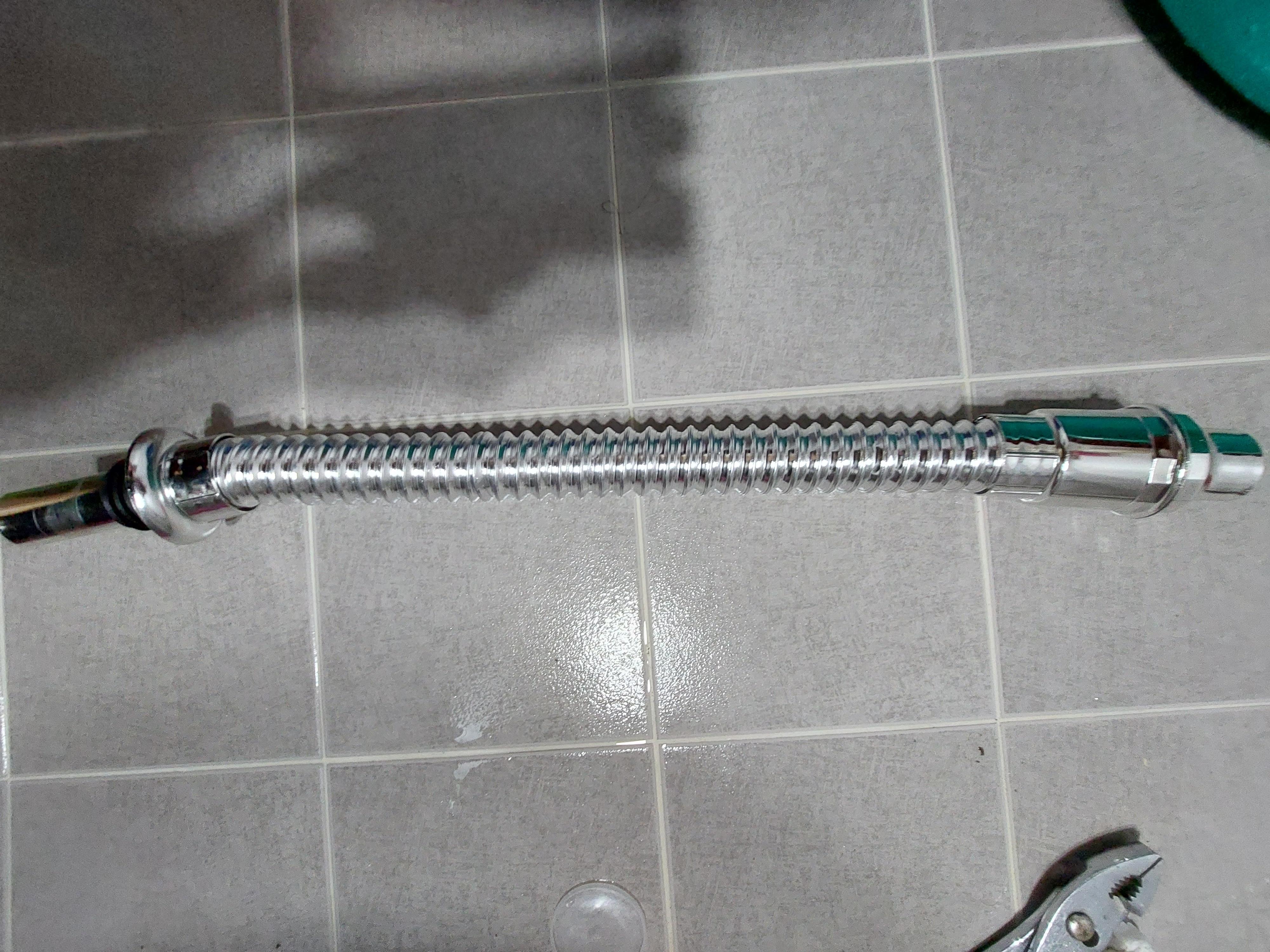 근처 생활용품점에서 6천원에 구입한 일자형 폽업입니다. 일자형 폽업은 주름관을 늘리면 저렇게 엄청 길게 늘어납니다.