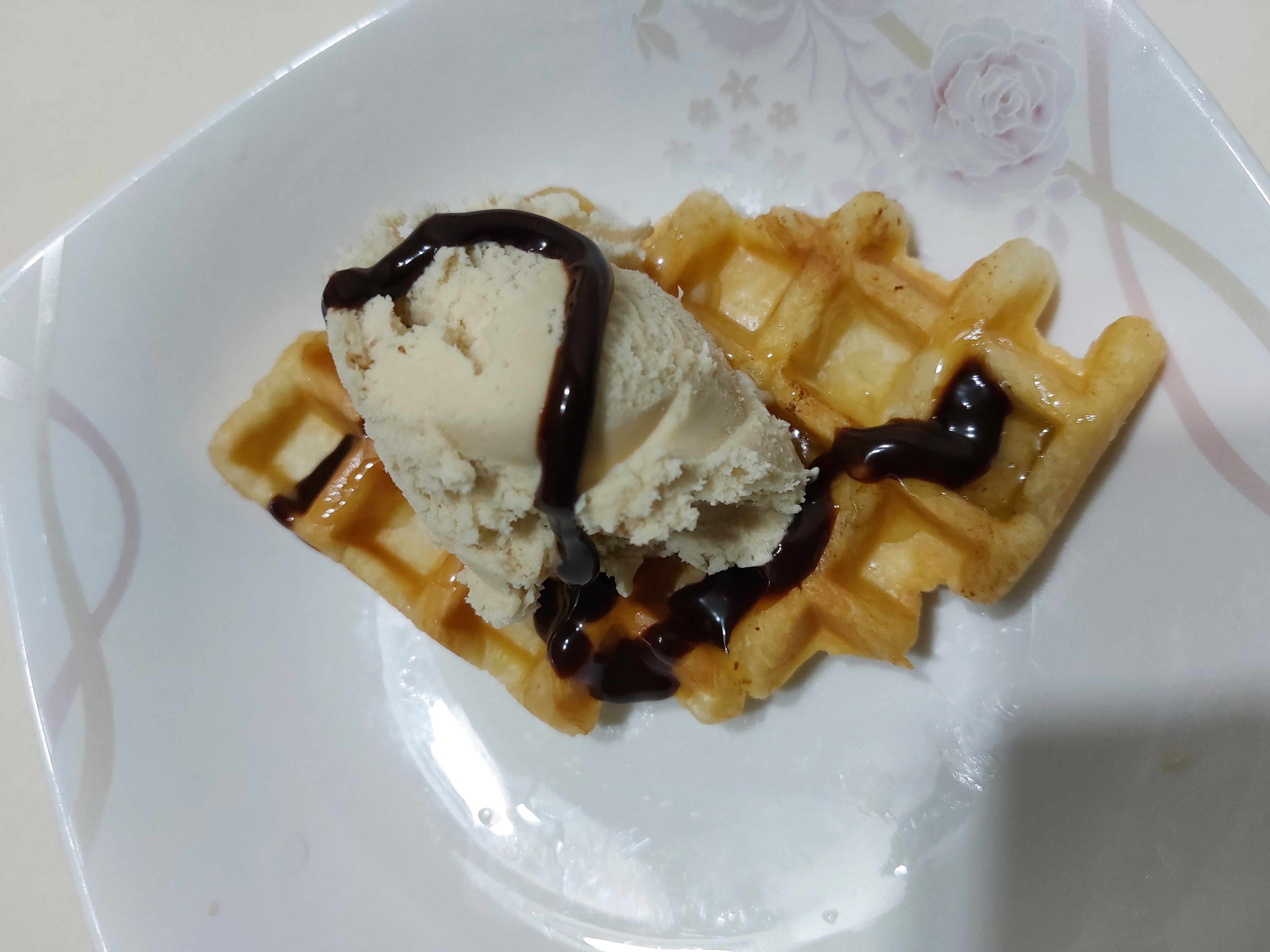 재료 : 크로와상 생지, 시럽이나 꿀, 초코시럽, 아이스크림, 버터나 식용유, 와플팬