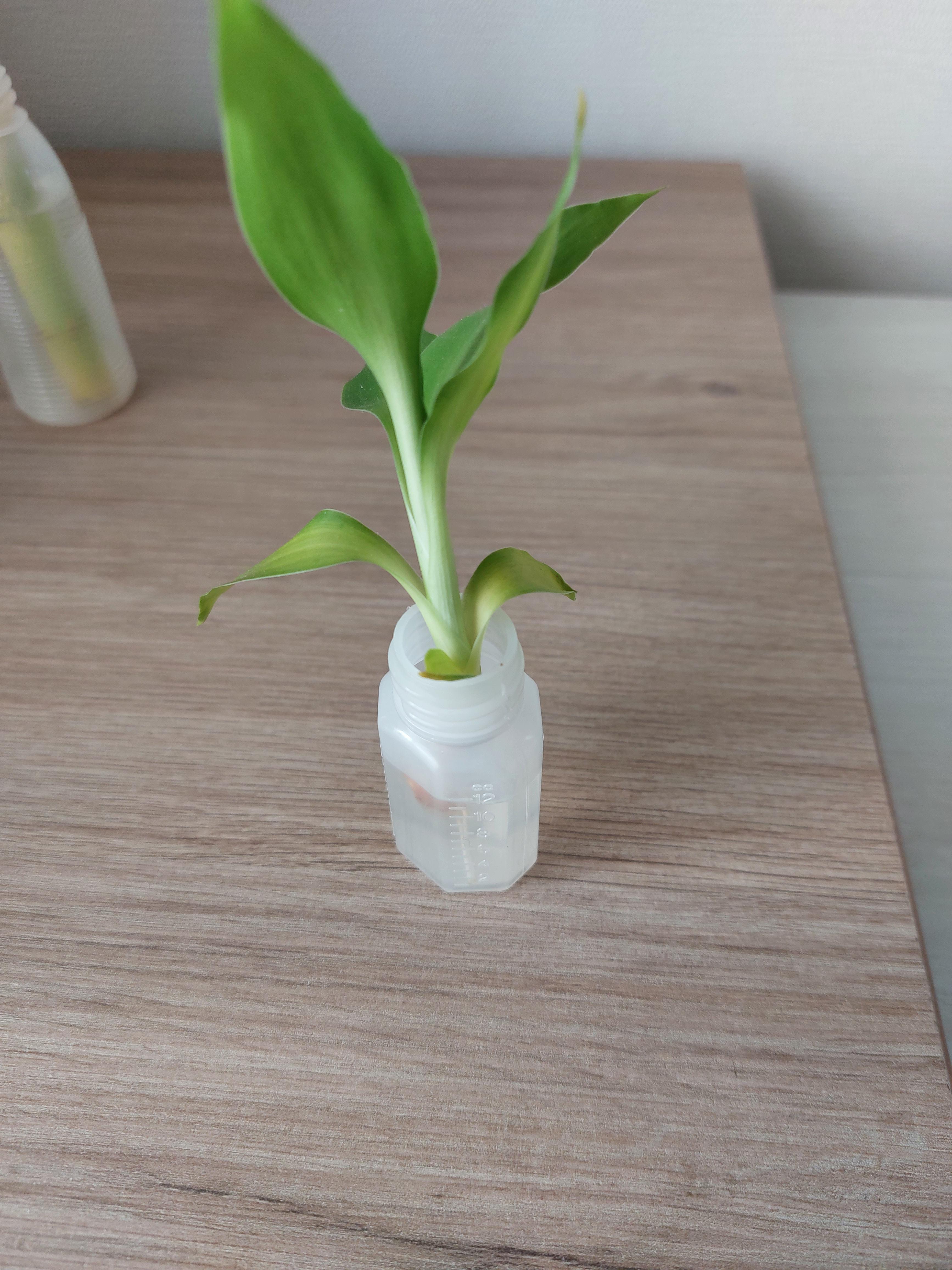 개운죽에 붙어 있던 잎자루 하나를 떼서 물에 넣어두었을 뿐인데, 새로운 뿌리가 나서, 새로운 하나의 개체가 또 생겼네요.