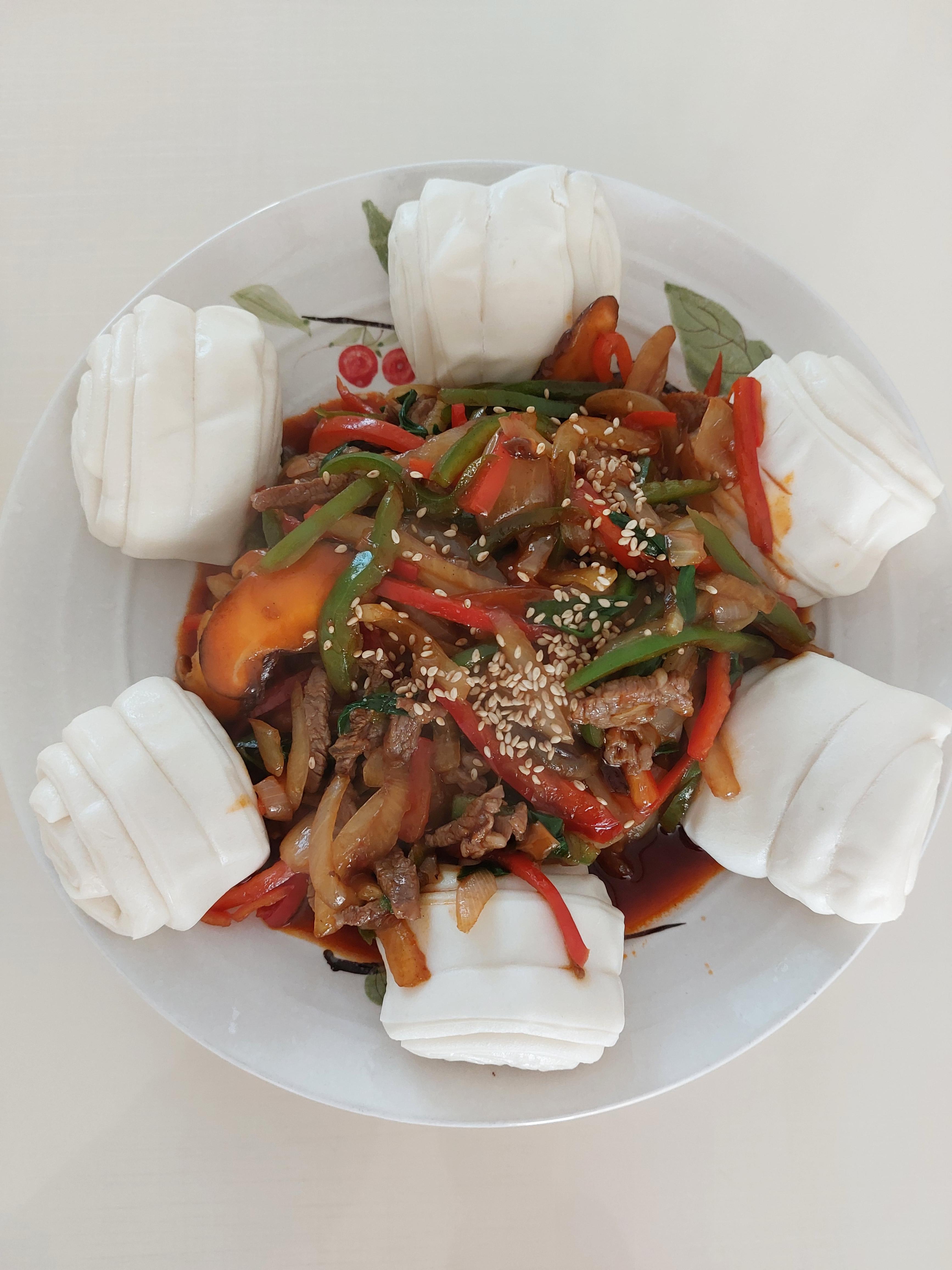 먹을 때 알았어요. 빵을 둘레에 얹지 말았어야 했어요. 빵 표면에 고추기름이 묻어서 펼치기 어려웠네요. ㅎㅎㅎ