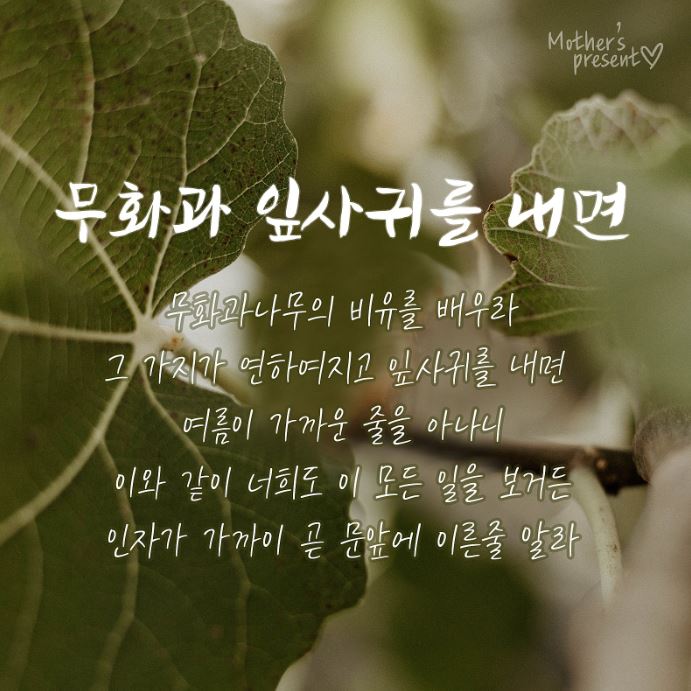 "무화과나무의 가지가 부드러워지고, 잎사귀를 내는 때"에 내가 다시 오겠노라 하셨습니다.