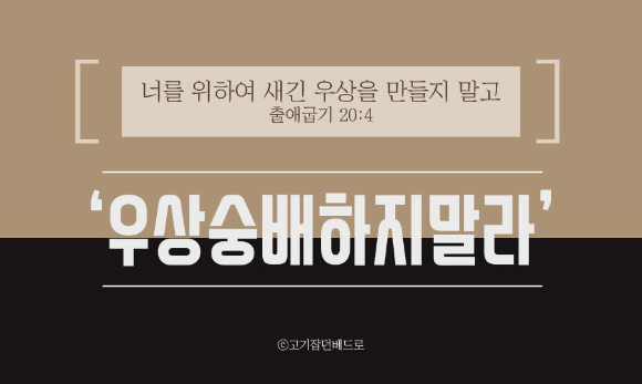 출애굽기 20장 4~5절 너를 위하여 새긴 ①우상을 만들지 말고 또 위로 하늘에 있는 것이나 아래로 땅에 있는 것이나 땅아래 물속에 있는 것의 ②아무 형상이든지 만들지 말며 그것들에게 절하지 말며 그것드를 섬기지 말라 나 여호와 너의 하나님은 질투하는 하나님인즉 나를 미워하는 자의 죄를 갚되 아비로부터 아들에게로 삼 사대까지 이르게 하거니와