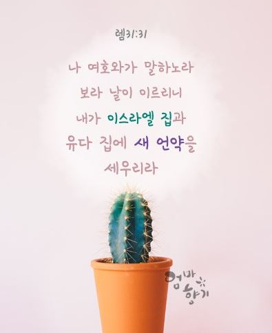 | 렘 31:31~33 내가 이스라엘 집과 유다 집에 새 언약을 세우리라 … 내가 이스라엘 집에 세울 언약은 이러하니 곧 내가 나의 법을 그들의 속에 두며 그 마음에 기록하여 나는 그들의 하나님이 되고 그들은 내 백성이 될 것이라 |