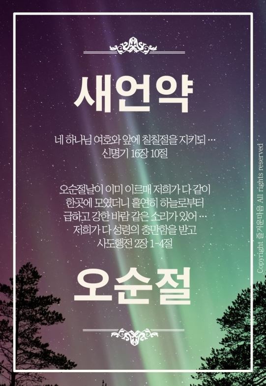 | 행 2:1 ④오순절날이 이미 이르매 저희가 다 같이 한곳에 모였더니 |