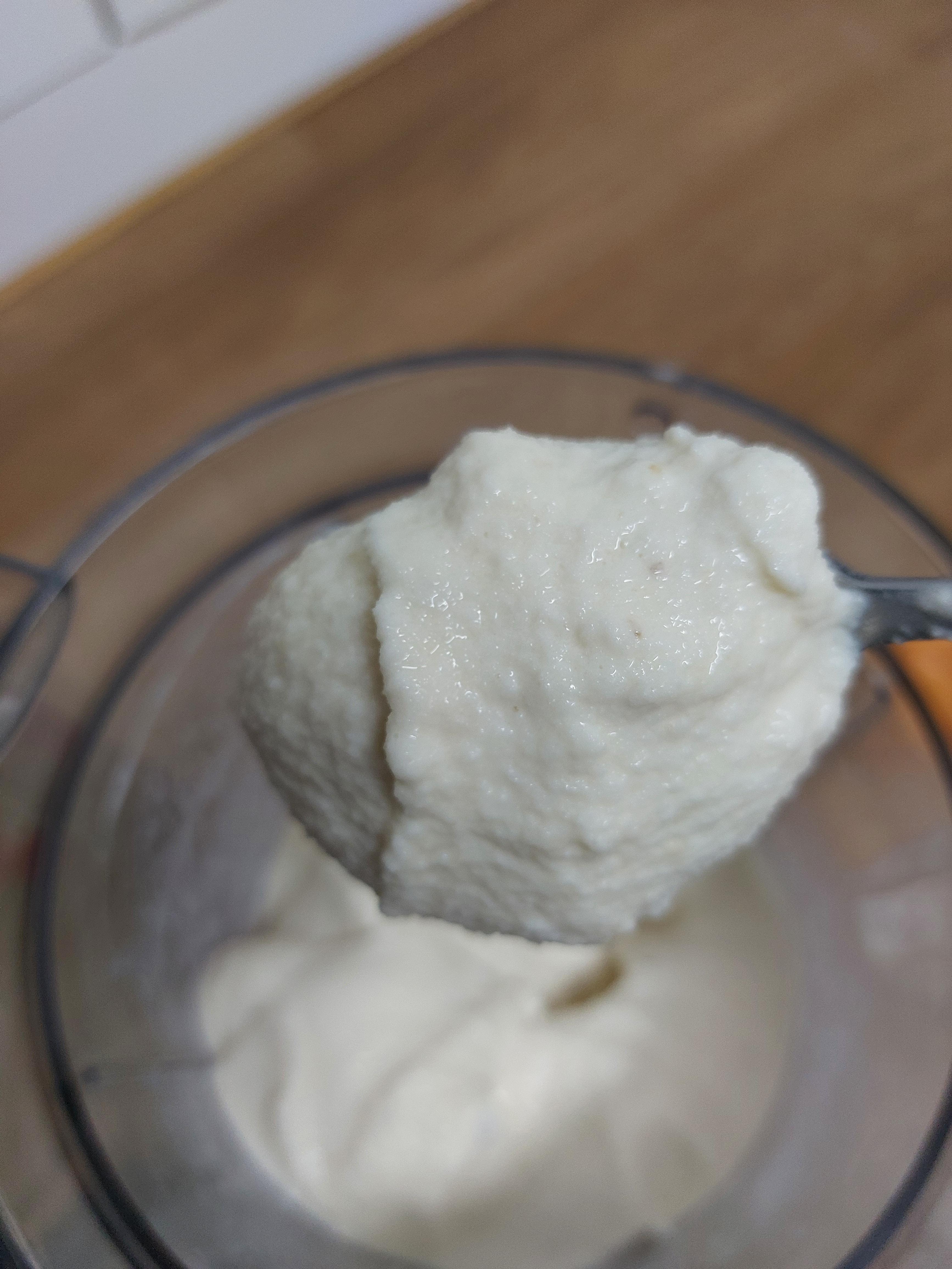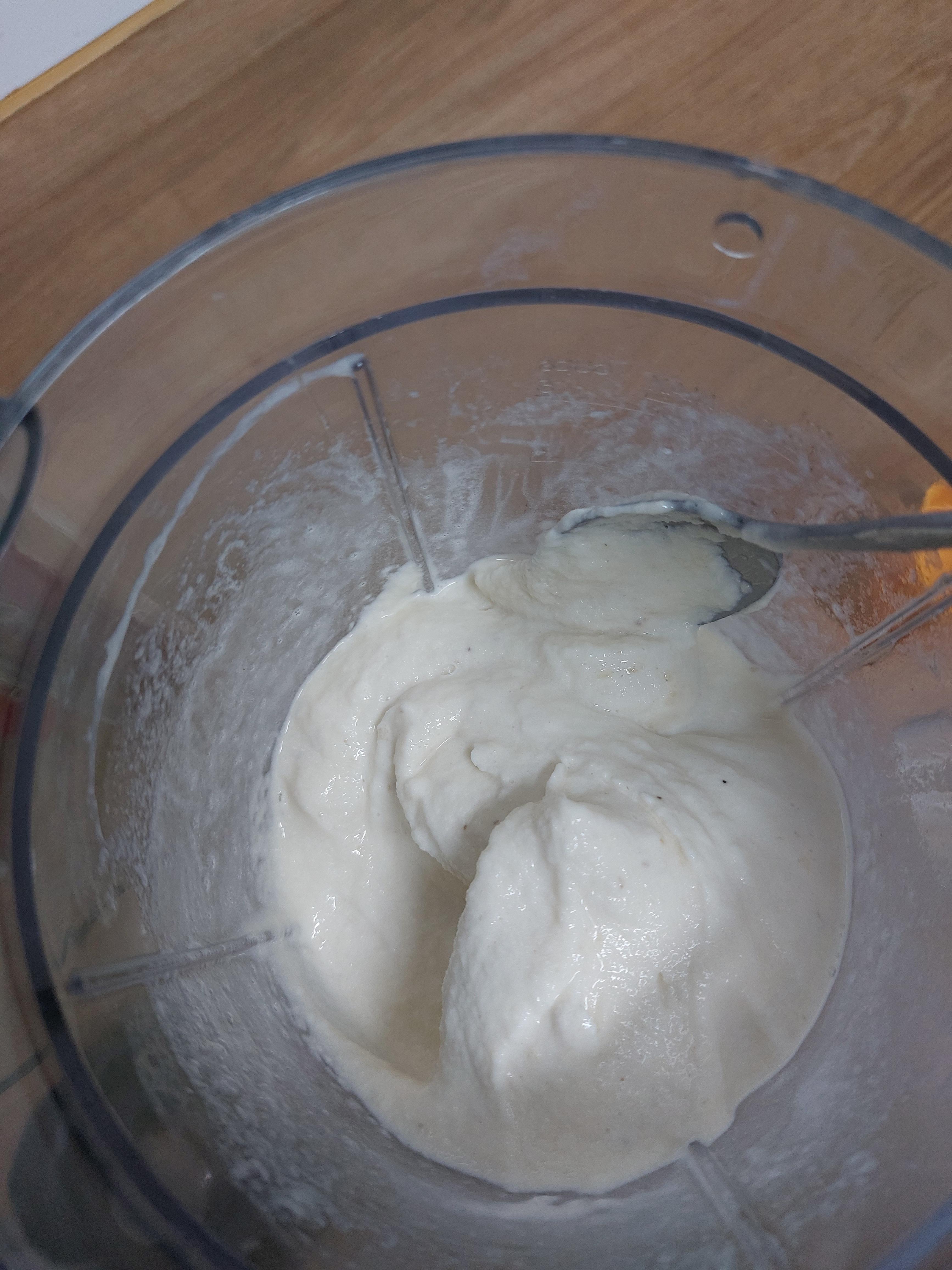 믹서기를 돌립니다. 돌리면서 우유를 조금 더 넣어주면서 걸쭉하게 만들어주면 됩니다.