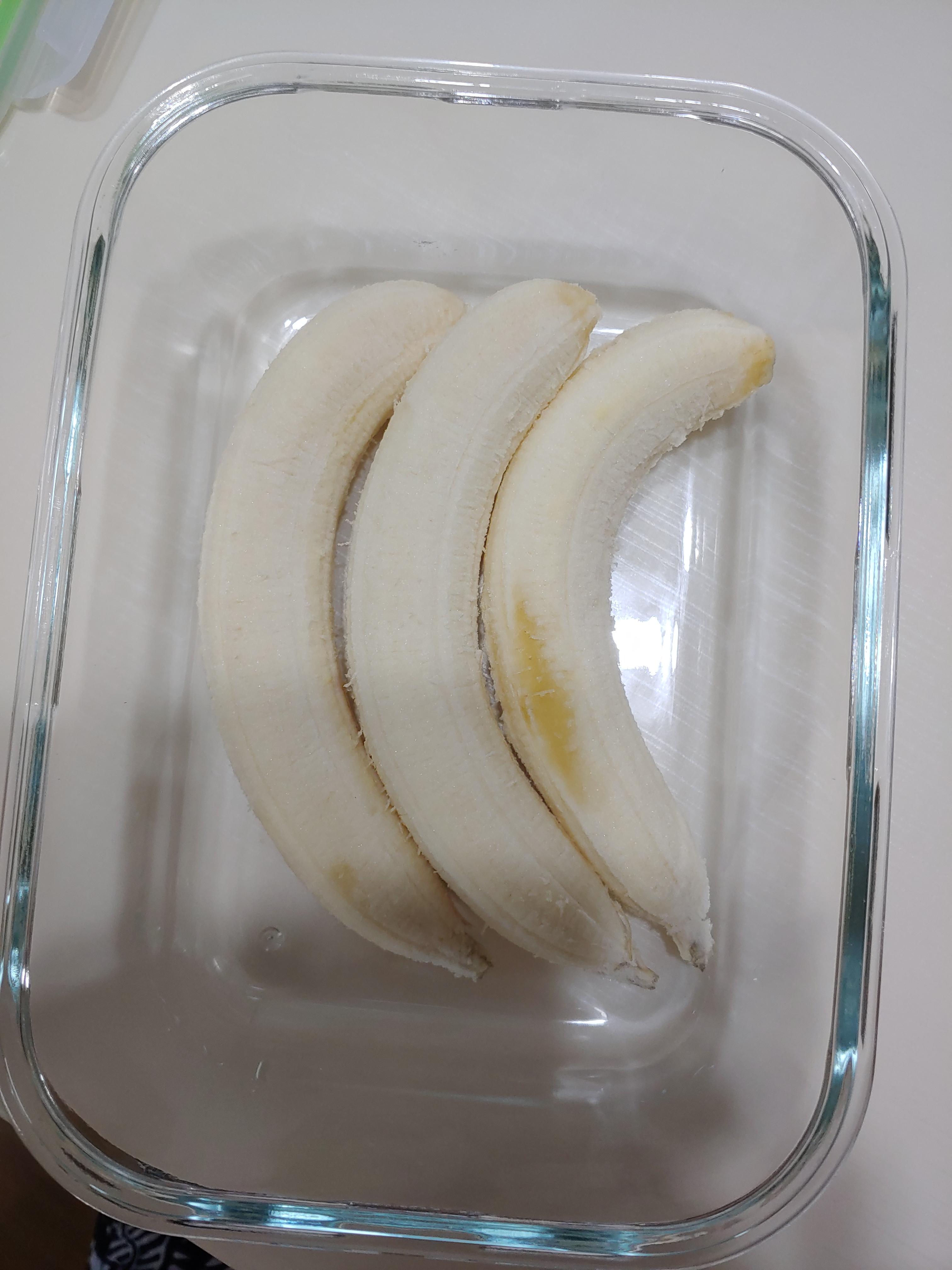 바나나가 많아서 다 먹기 힘들 때, 바나나를 냉동실에 얼립니다. 당연히 껍질을 까서 얼려요.
