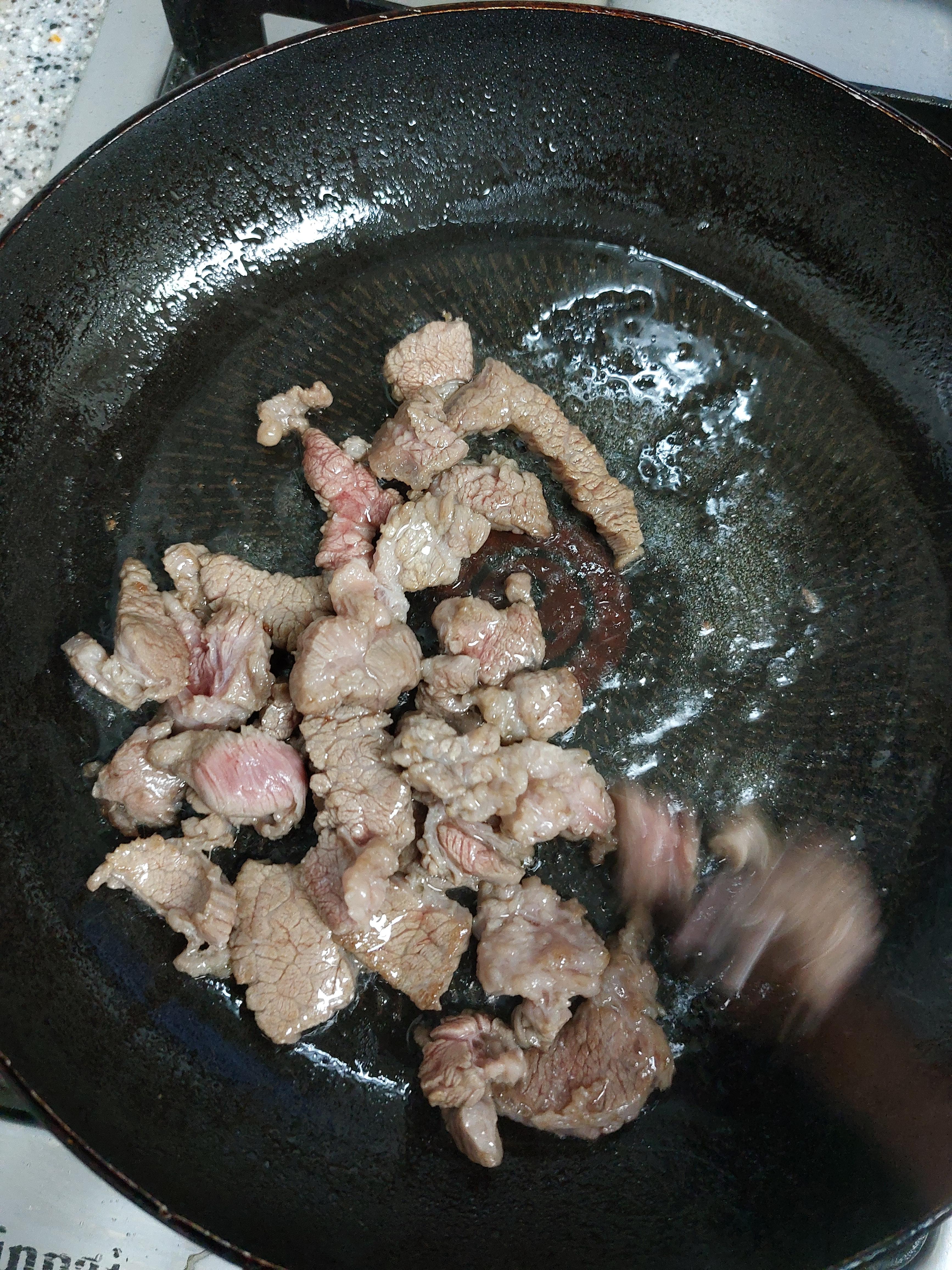 2. 소고기를 잘 먹기 좋은 크기로 잘라요. (고기가 조금 질겼습니다)