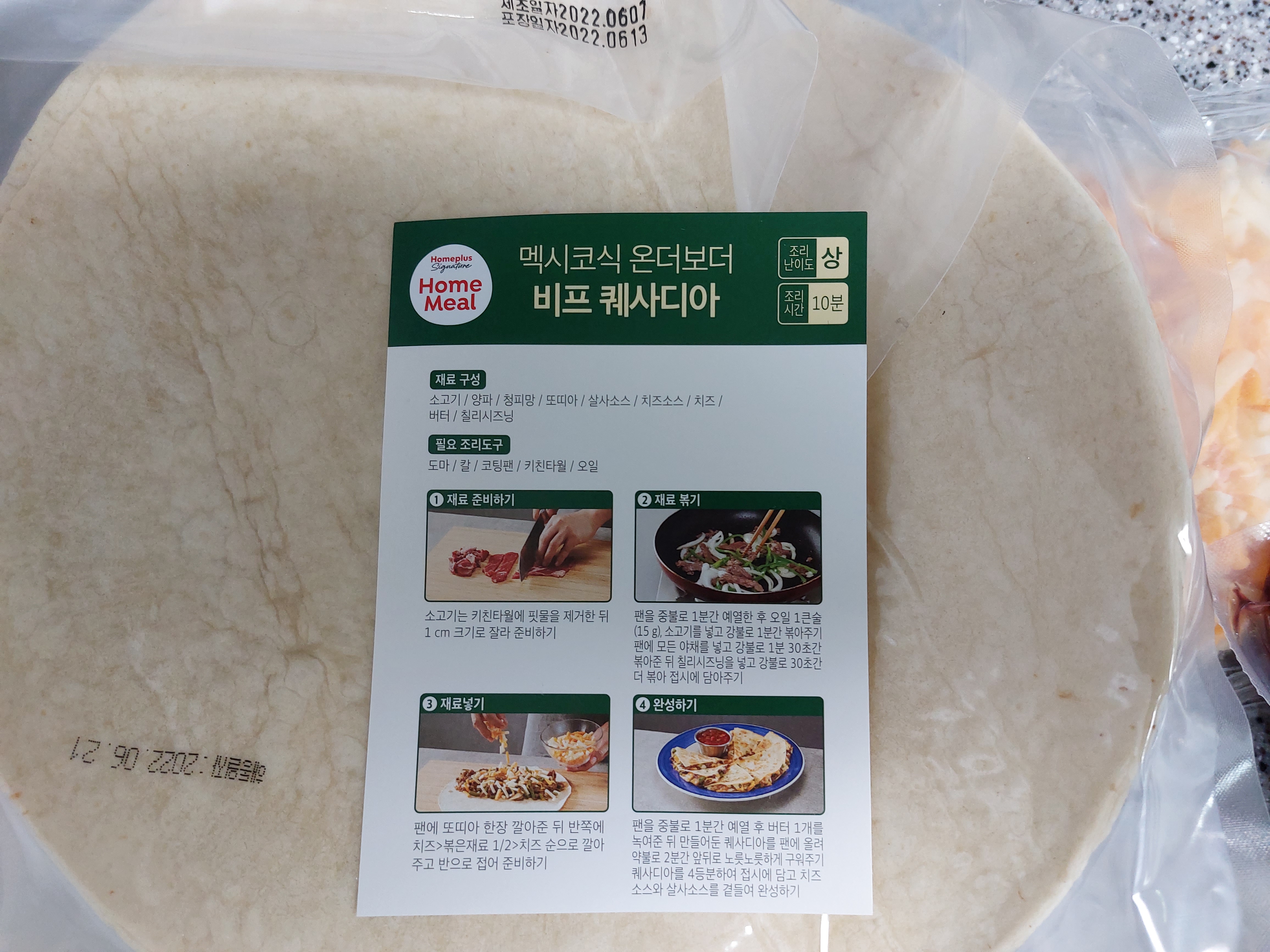비프 퀘사디아 밀키트 입니다. 홈플러스에서 샀어요. (광고 아니에요. 개인적 후기~)