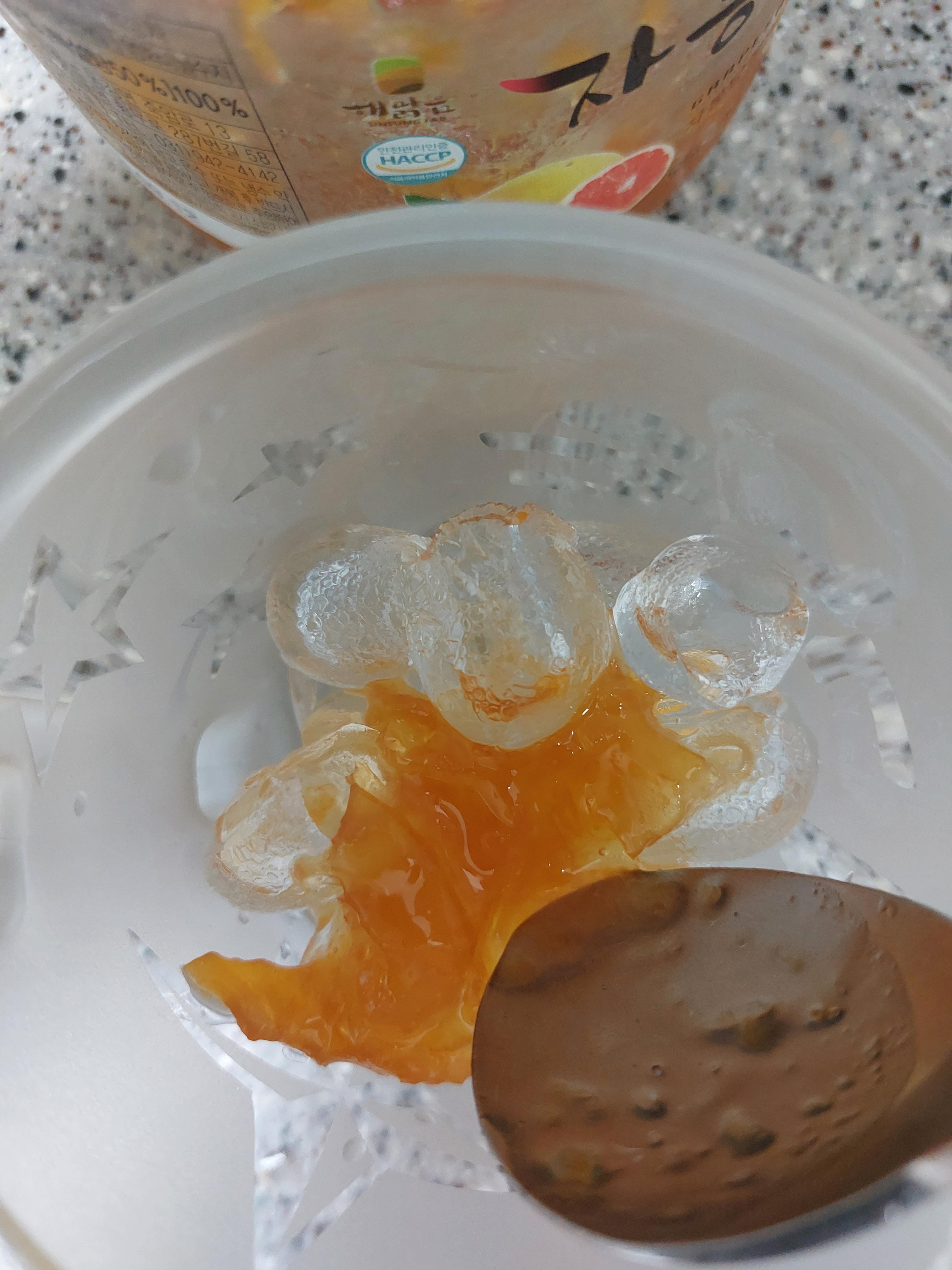 간단해요. 자몽청 몇 스푼 넣고, 탄산수 넣고, 얼음 넣어주면 끝!!