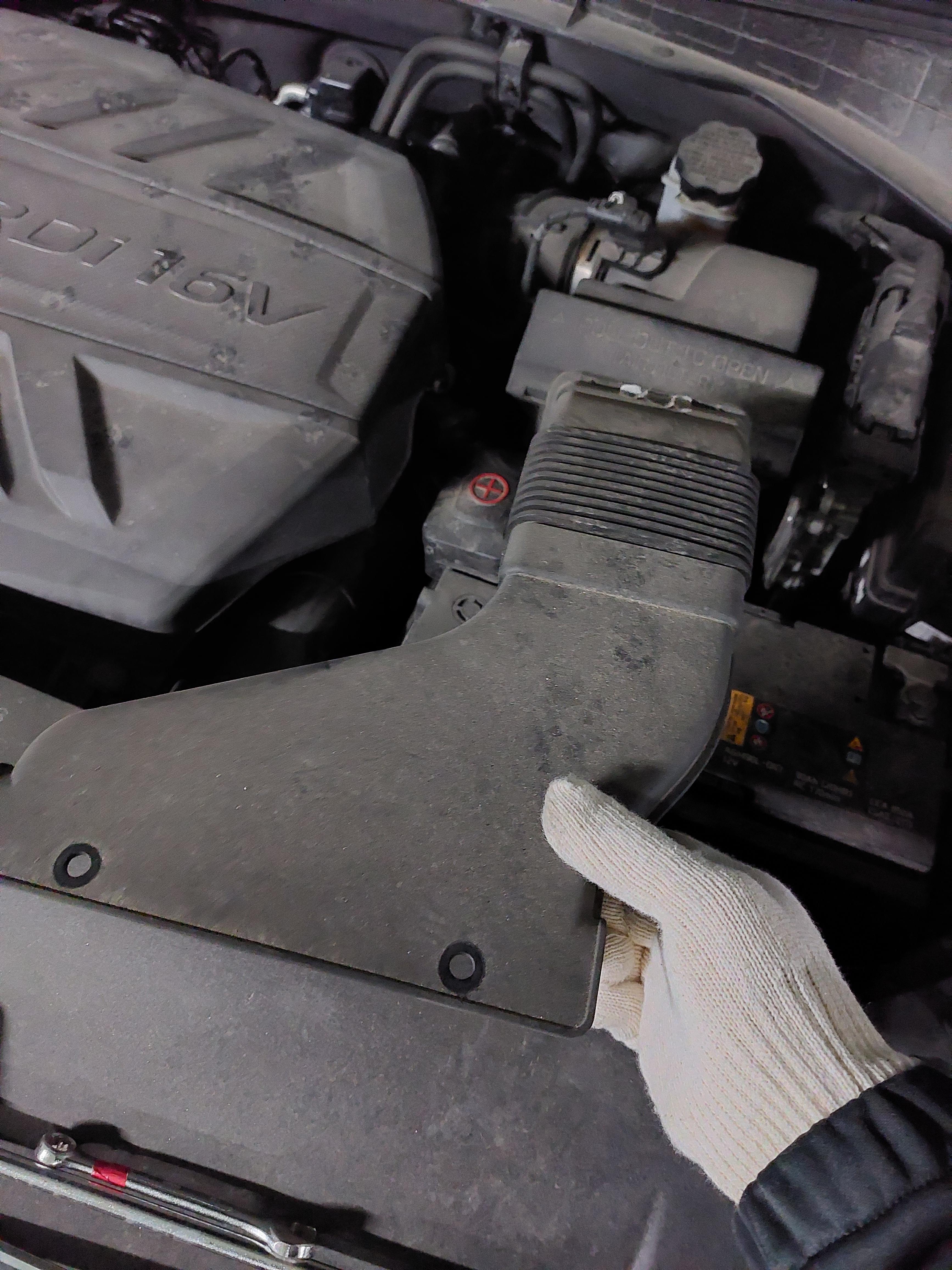 17. 공기 덕트도 다시 연결해줍니다. 덕트 핀은 가운데 심지가 쏙 올라오도록 한 뒤에, 다시 끼워주면 됩니다. 솟아나온 부분을 꾹 눌러주면 체결됩니다.