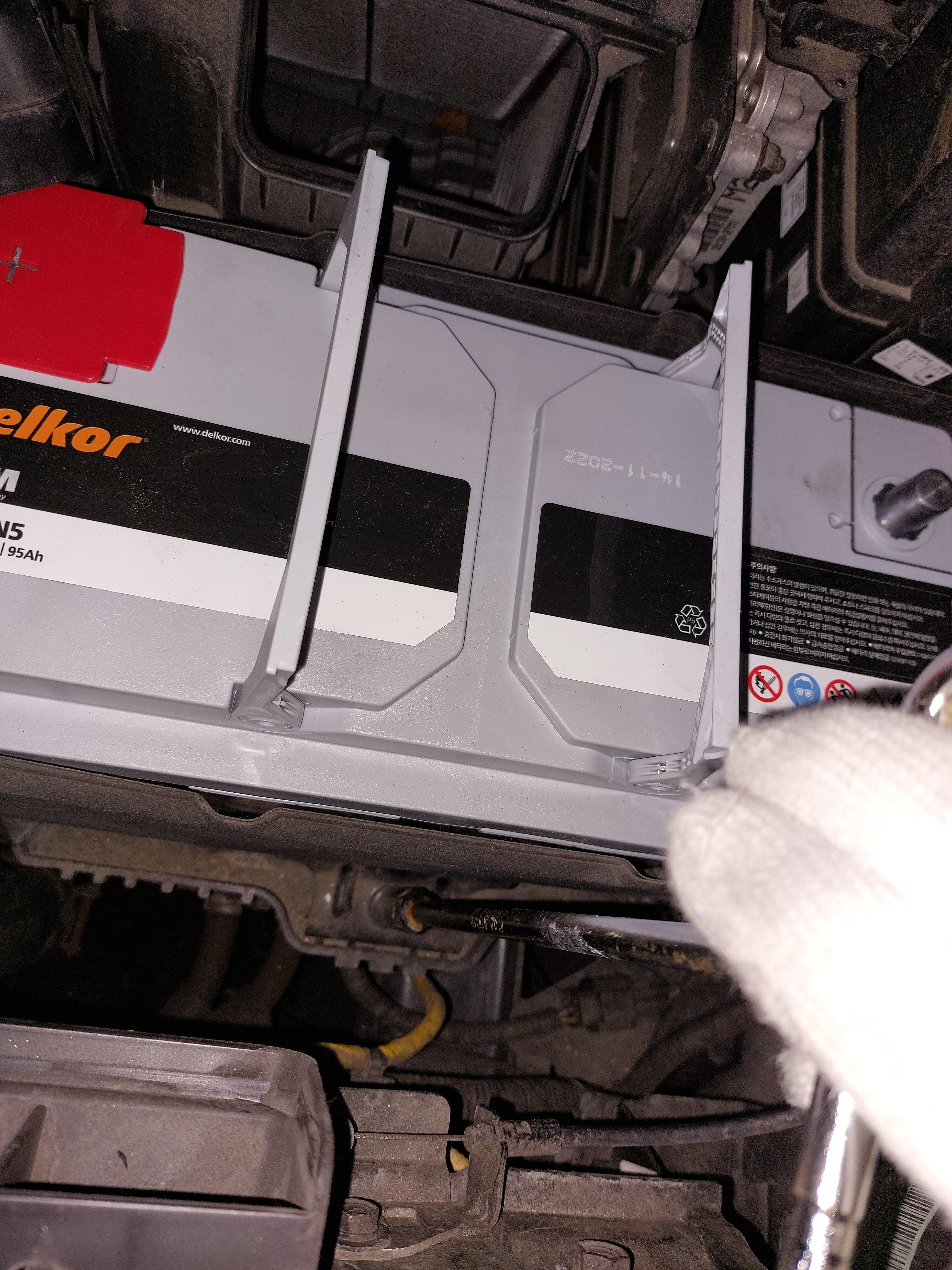 13. 조립은 역순입니다. 고정브라켓으로 배터리 고정시키고, + 단자 연결하고, 마지막으로 -단자를 연결하면 끝!