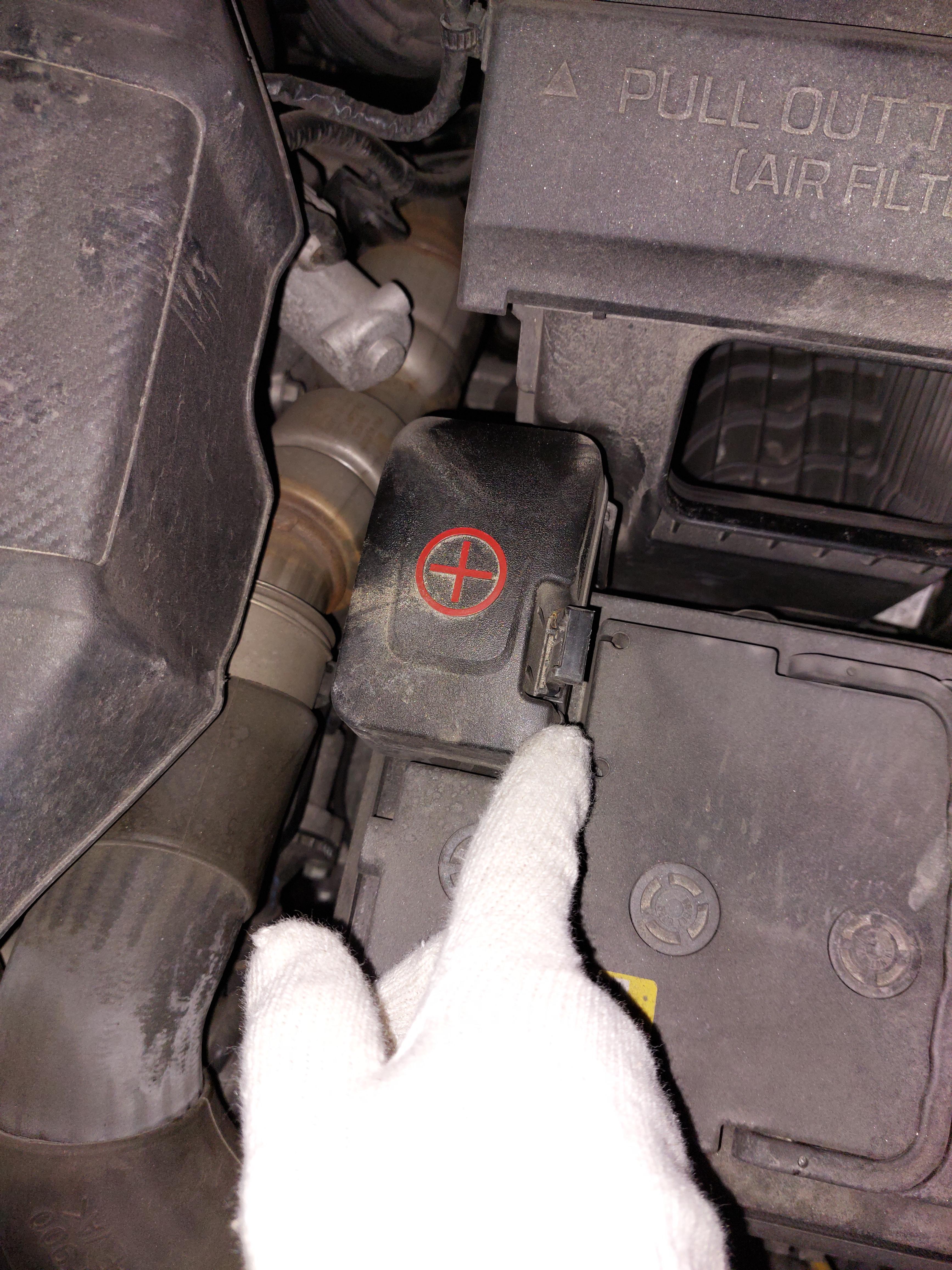 3. 이제 본격적으로 배터리 교체를 해 볼게요. 먼저 마이너스(음극) 부터 분리해야하니까요 덮개를 뺍니다.