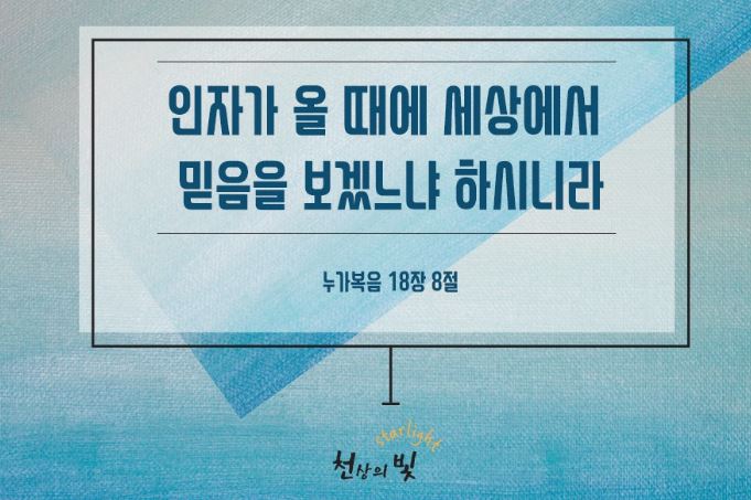 "인자가 올 때에 세상에서 믿음을 보겠느냐" 하셨습니다.